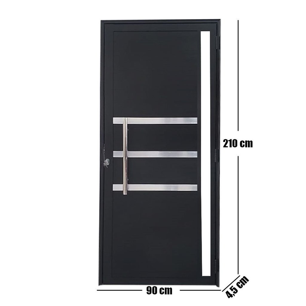 Porta Lambril de Alumínio 210 x 90cm com Friso e Visor Linha Veneza Abertura Esquerda Preto