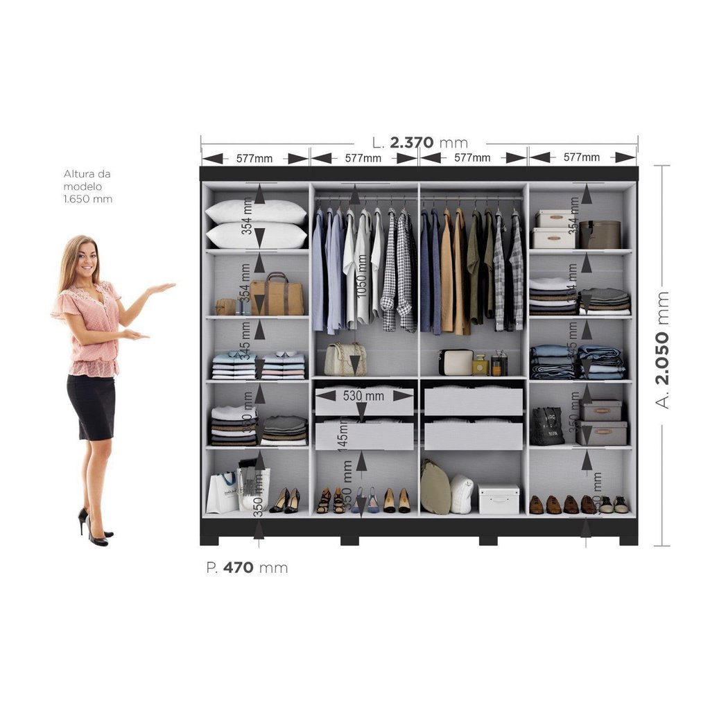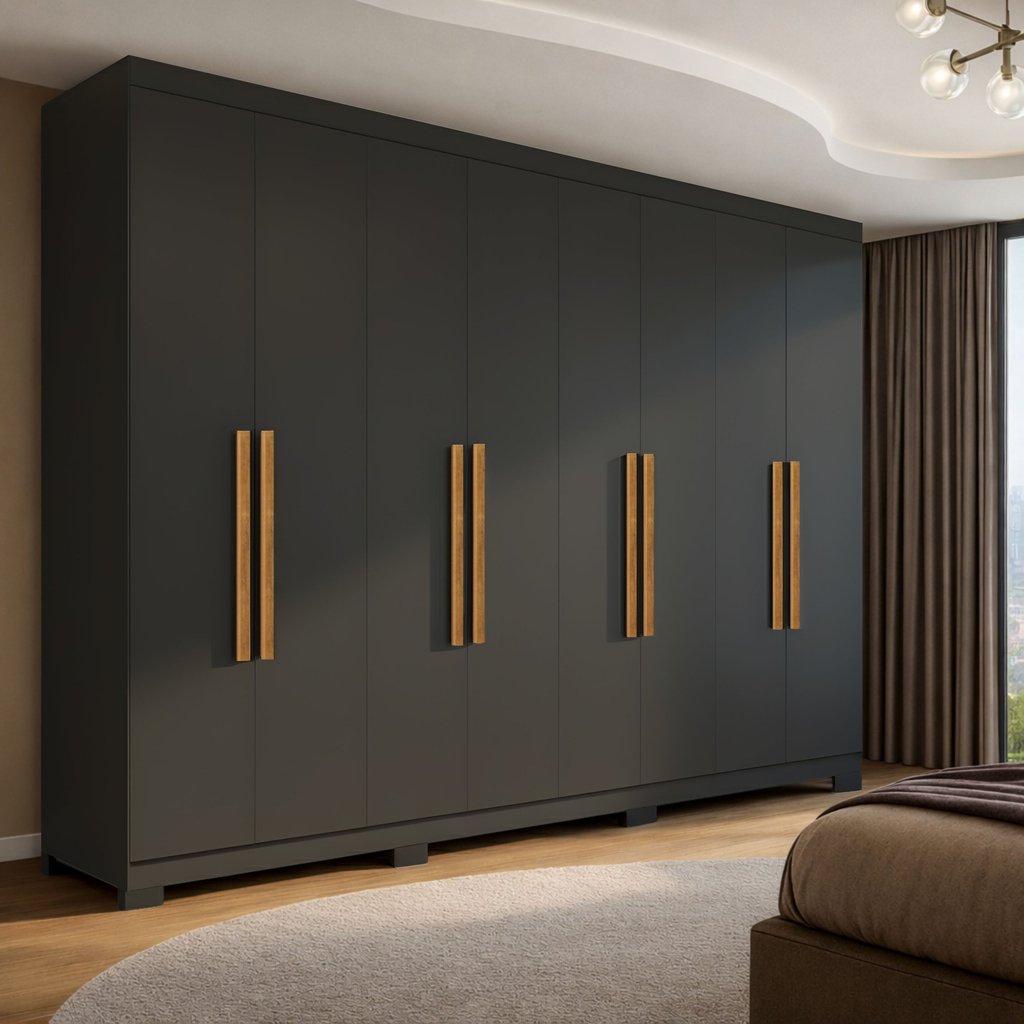 Guarda Roupa Casal 8 Portas 4 Gavetas com Pés Paris Espresso Móveis Preto