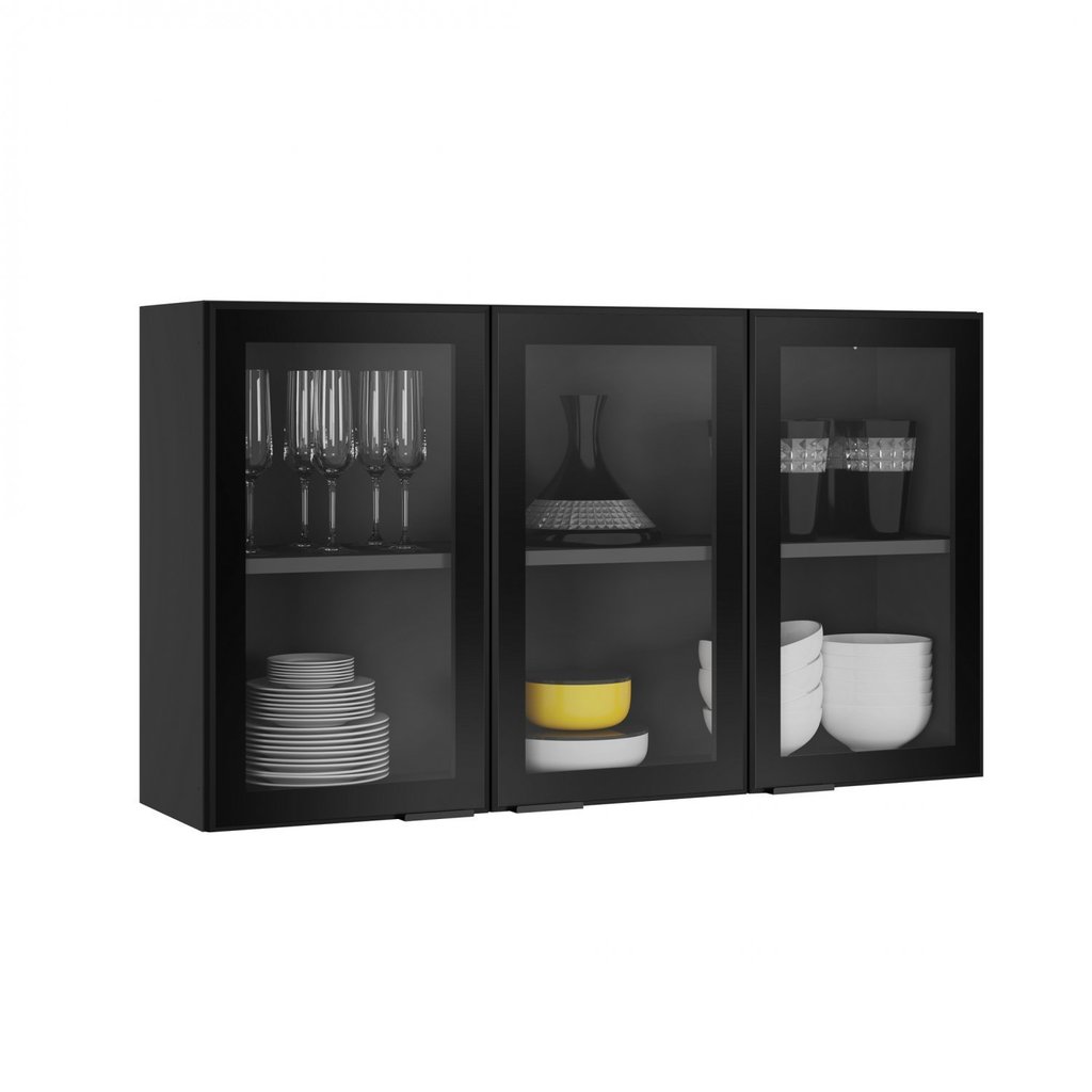 Armário de Cozinha em Aço 3 Portas de Vidro 120cm Dobradiças Slow Motion Exclusive Itatiaia Grafite/Preto