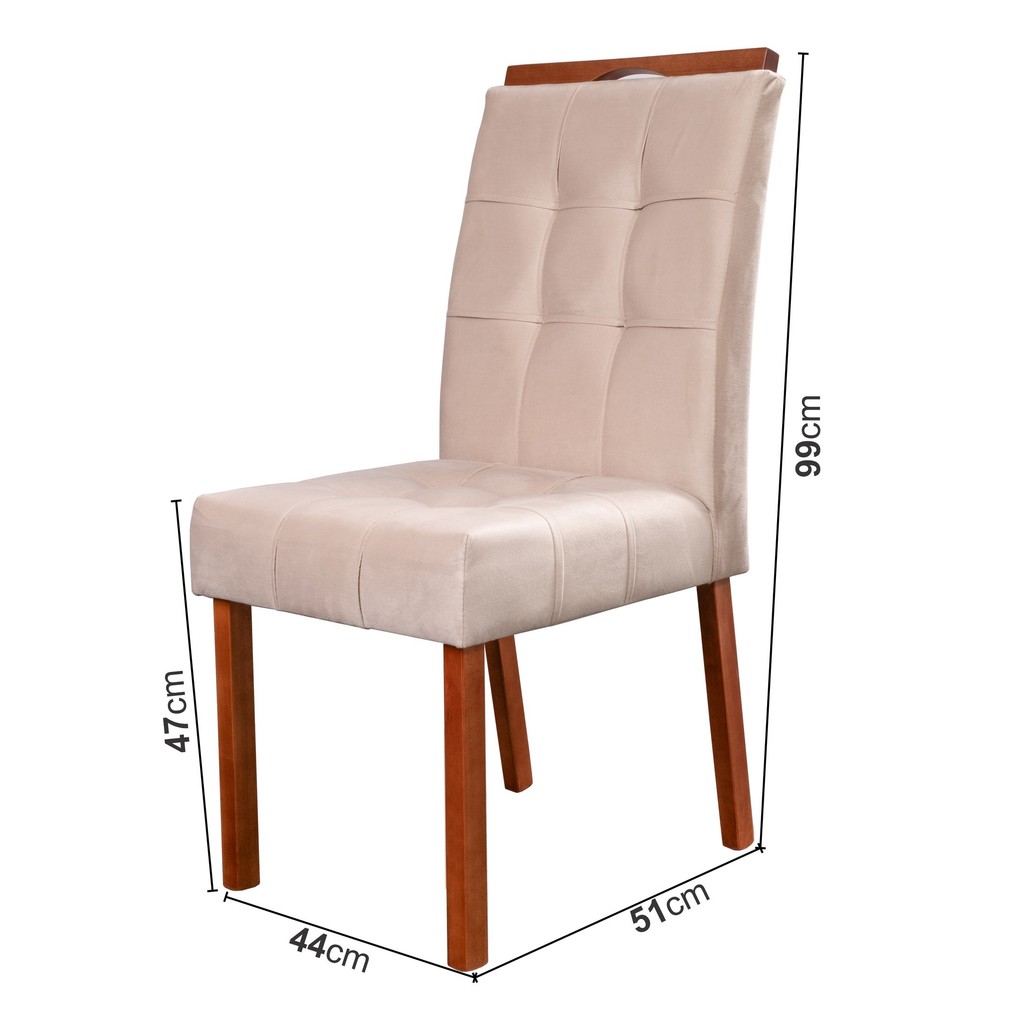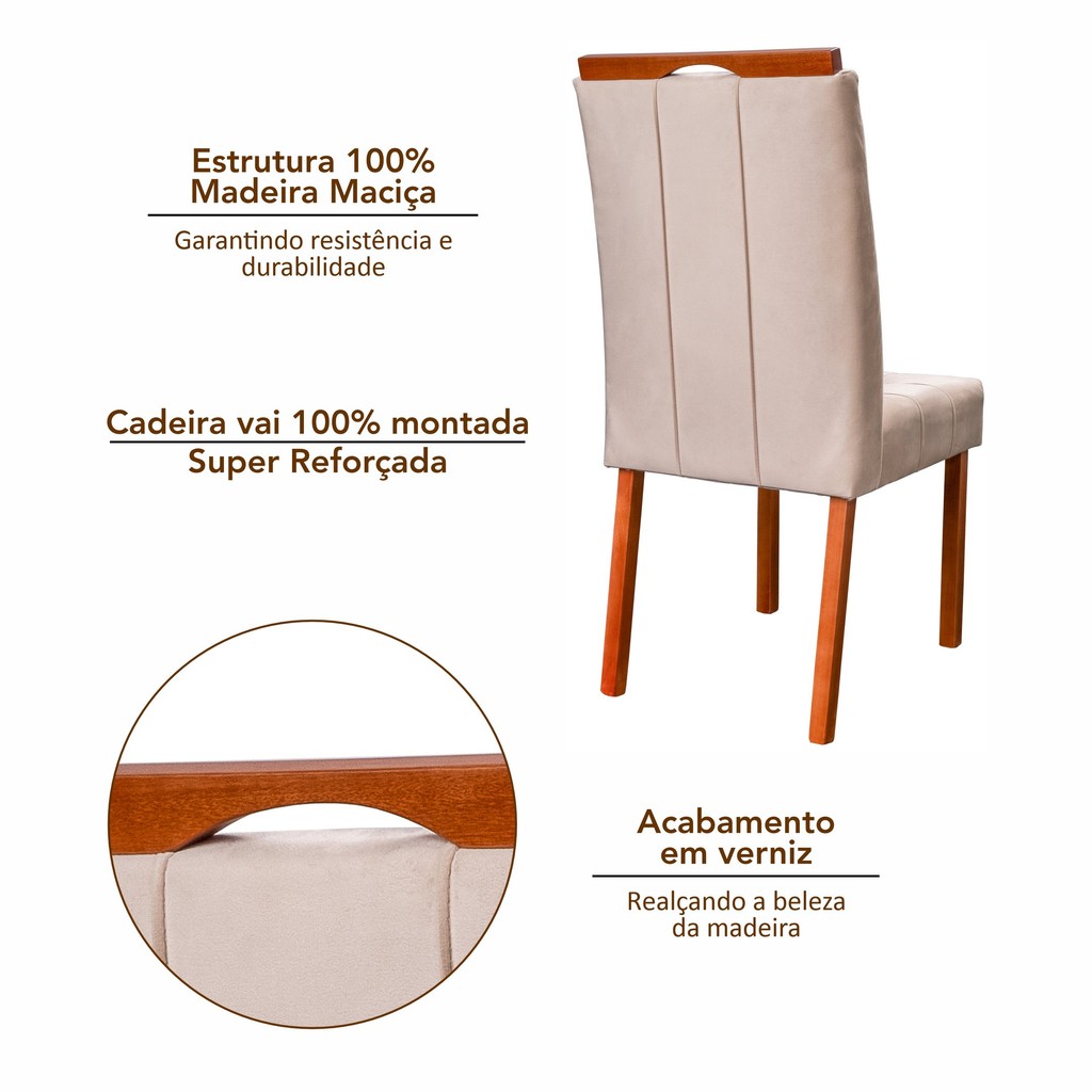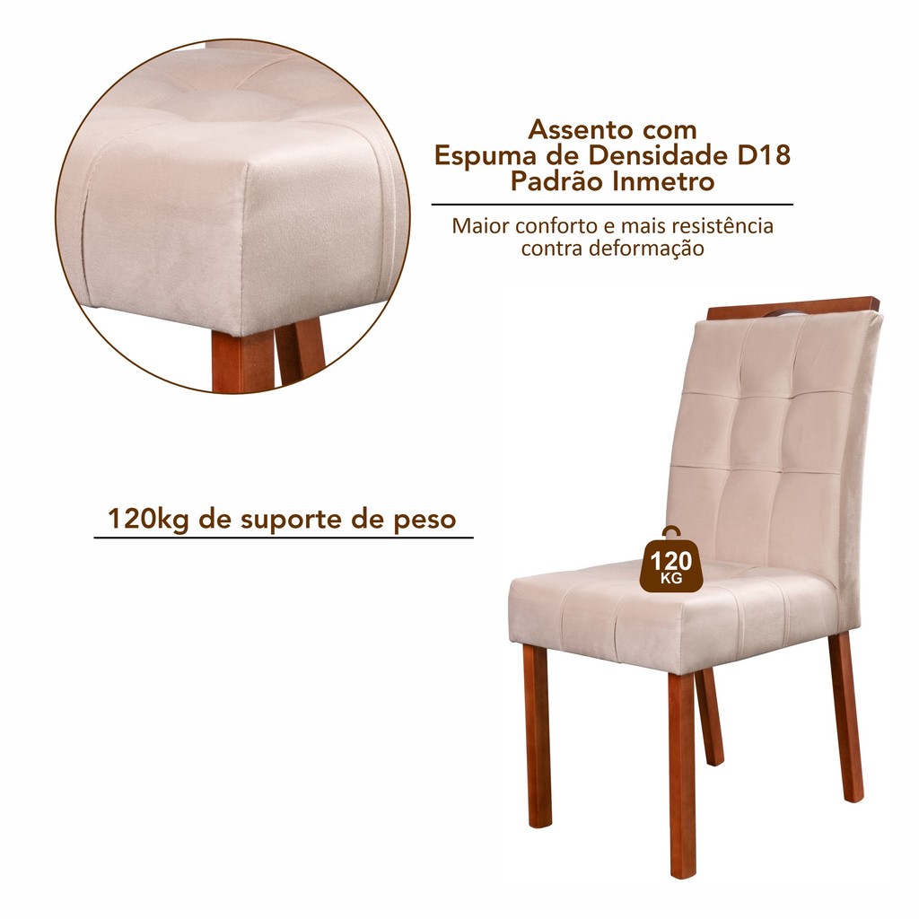 Kit 4 Cadeiras Madeira Maciça, Detalhe em Botonê e Estofada Sophia Espresso Móveis Champagne