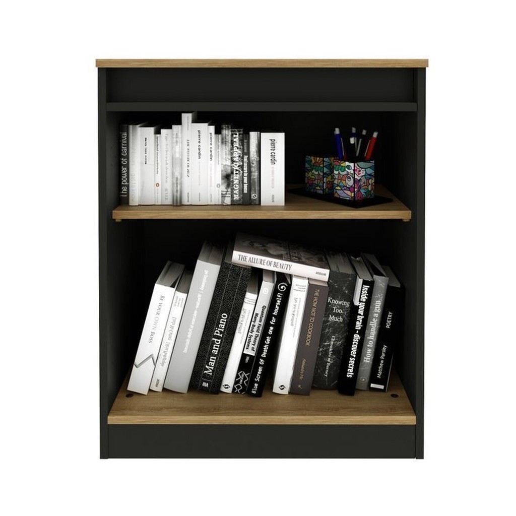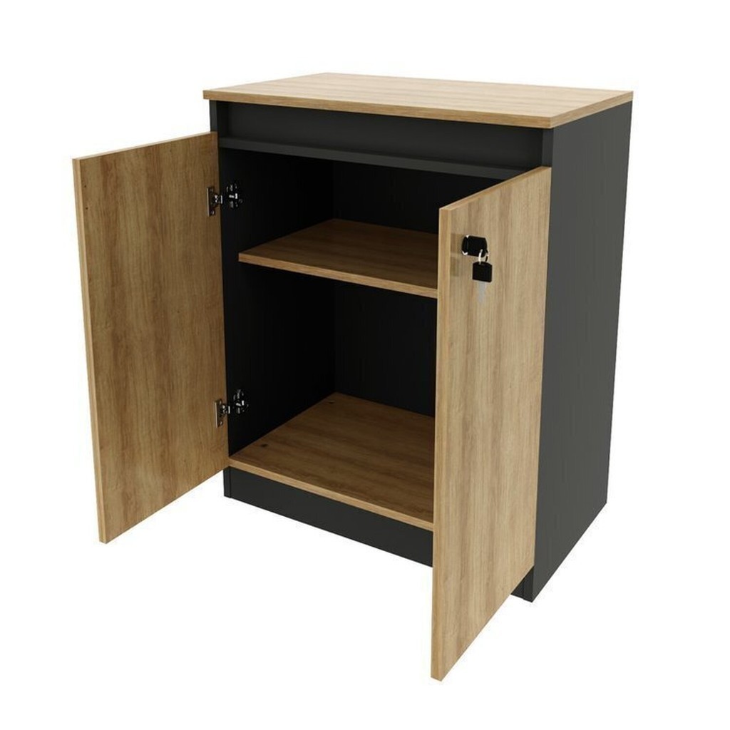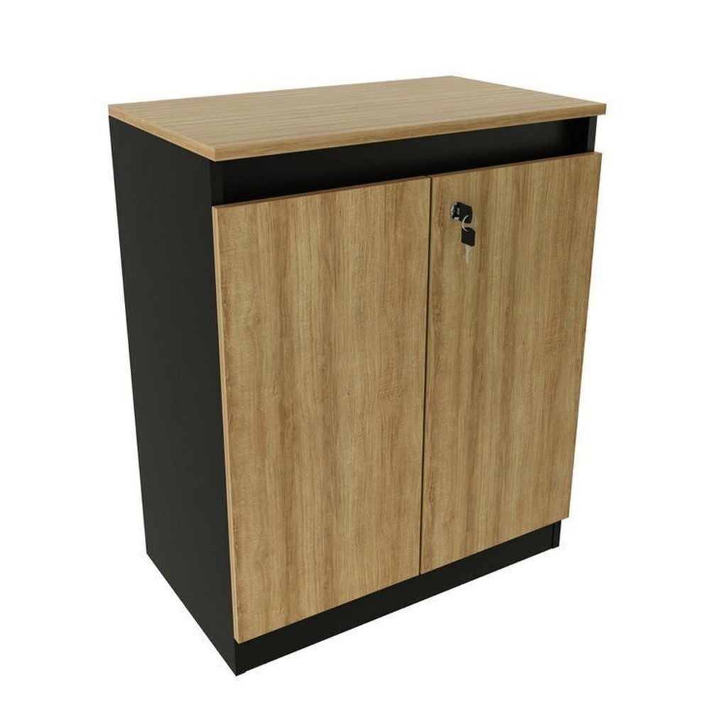 Kit 2 Peças Armário Escritório com 2 Portas com Chave, Balcão para Escritório com Chave e 2 Portas Amêndoa/Preto