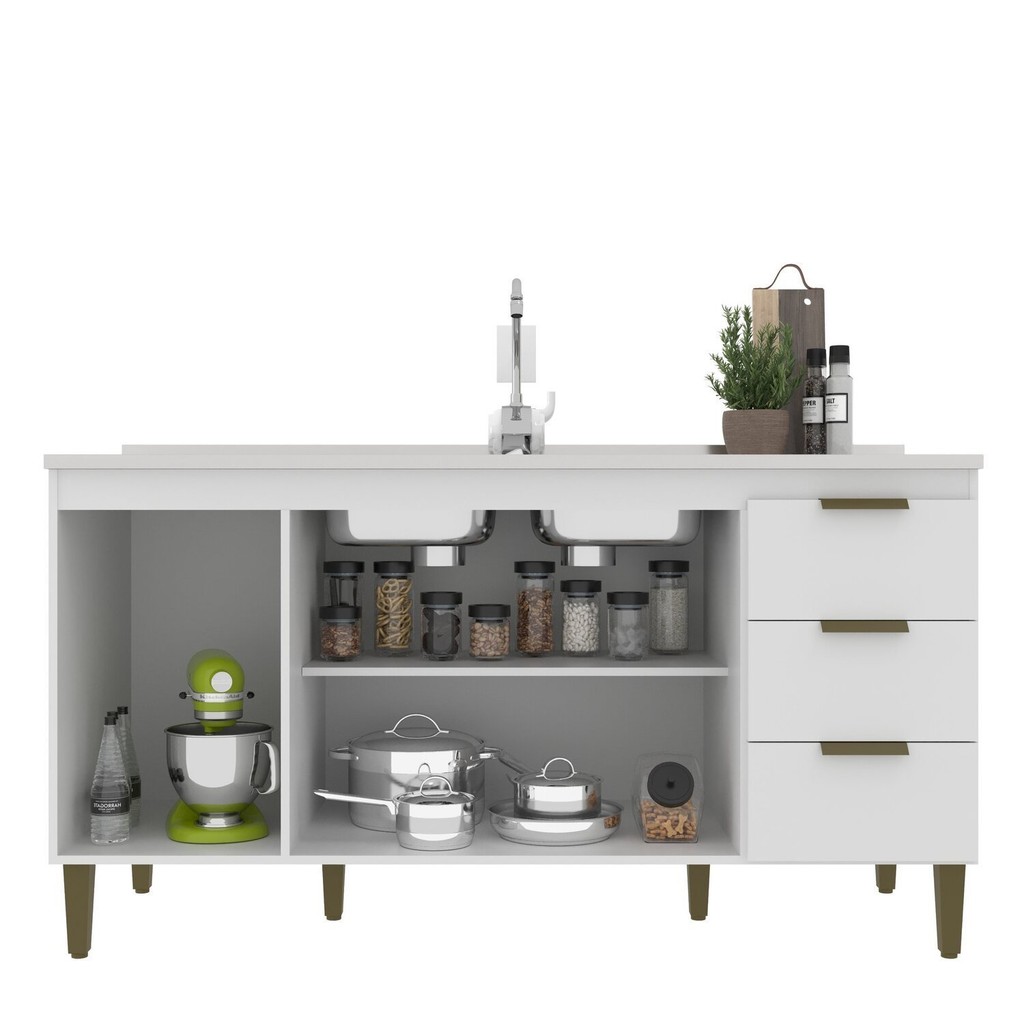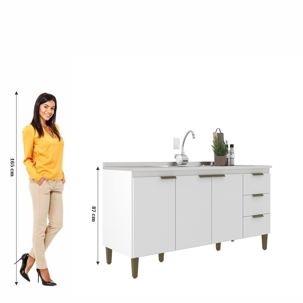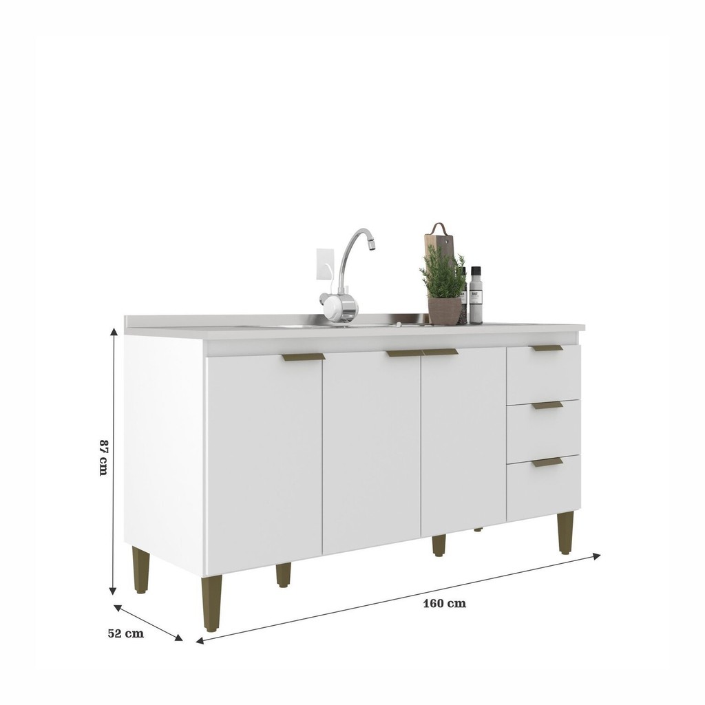 Balcão de Pia para Cozinha 3 Portas 3 Gavetas