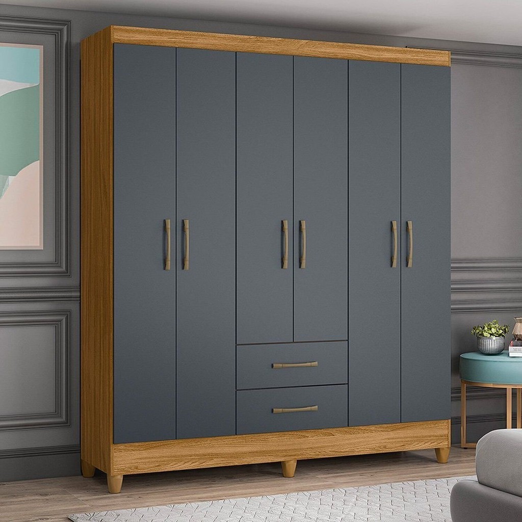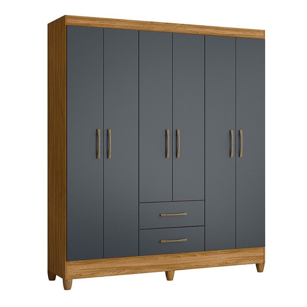 Guarda-Roupa Casal 6 Portas e 2 Gavetas e Pés Panamá Freijó/Cinza
