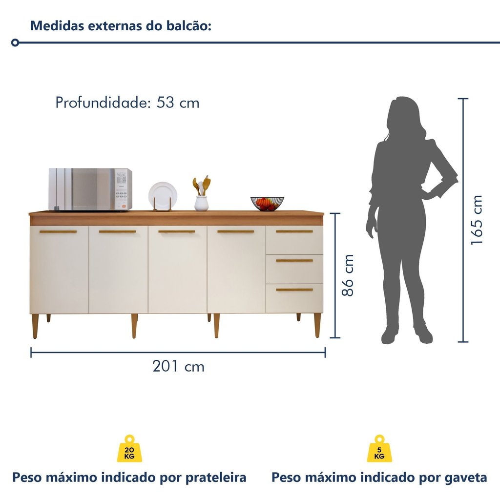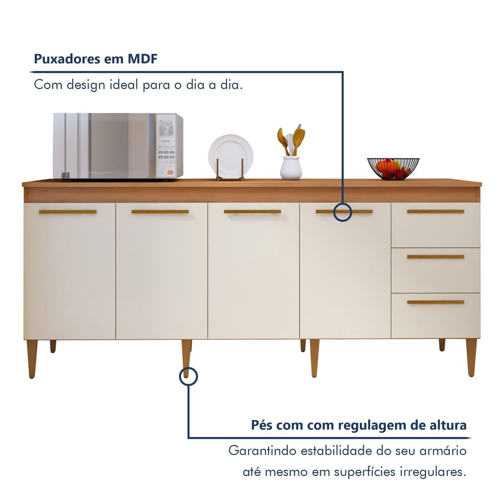 Balcão Atenas 4 Portas e 3 Gavetas Nature/Off White