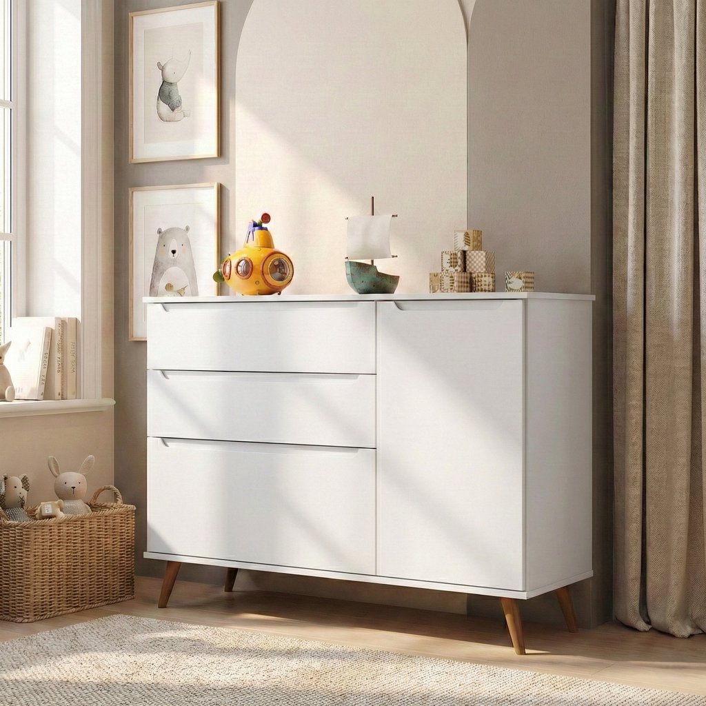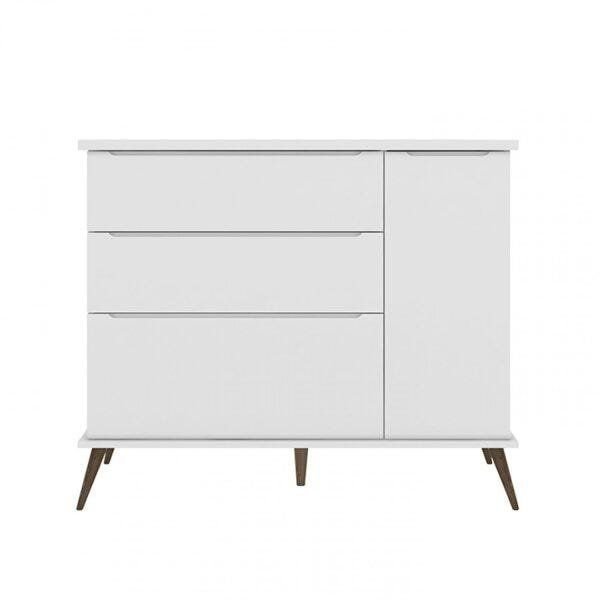 Cômoda Infantil 100% MDF com 3 Gavetas e 1 Porta Retrô Melinda Branca Branco