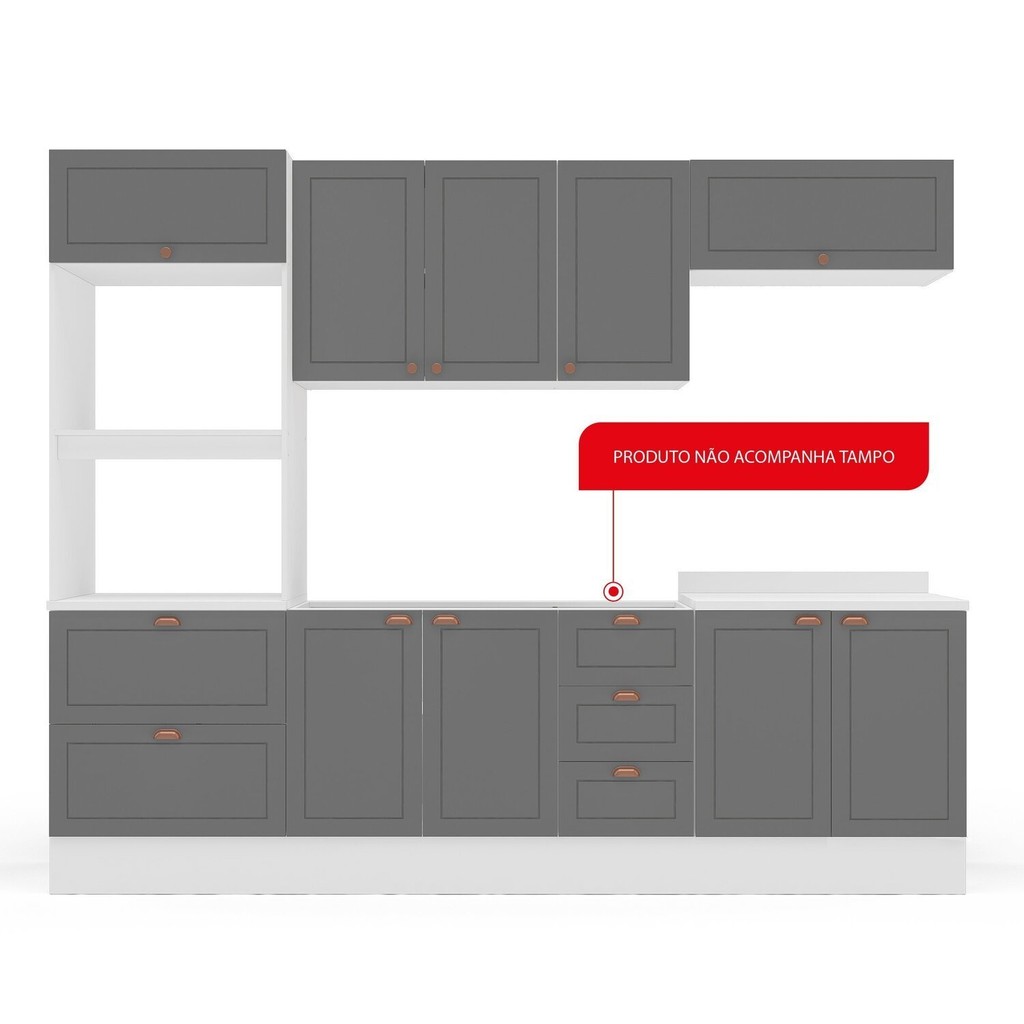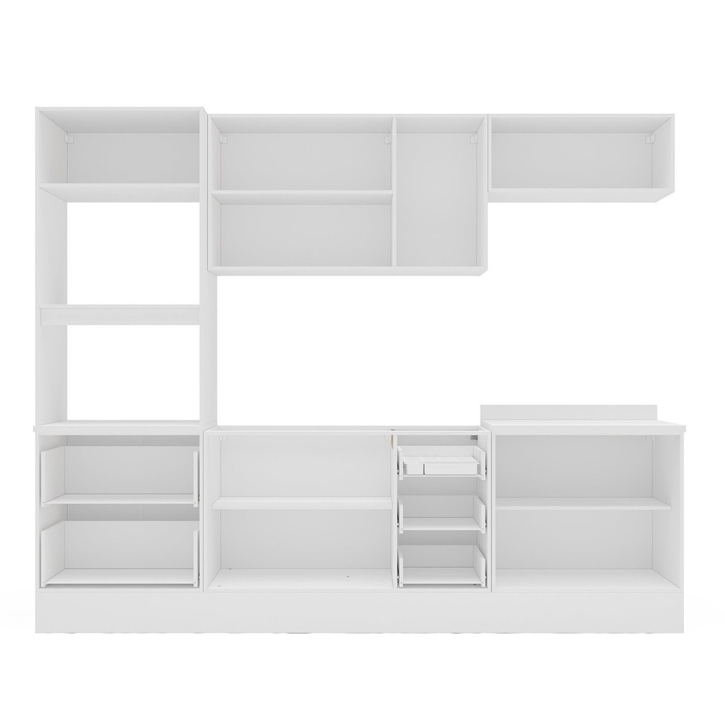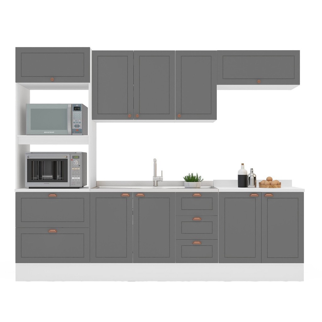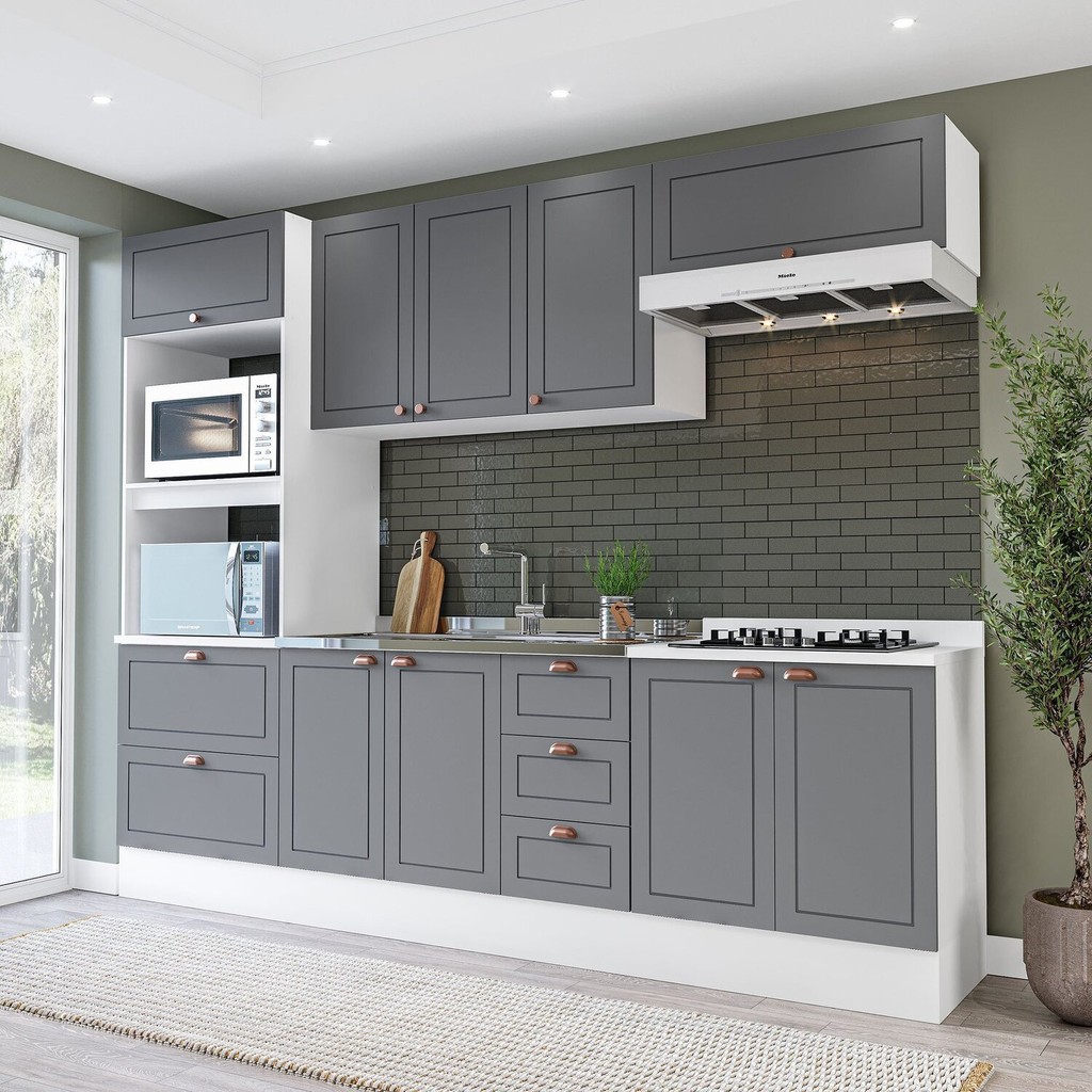 Cozinha Pérola com Rodapé 5 Peças Torre Quente Aéreo 3 Portas Balcão 120 Balcão 80 e Basculante Yesc