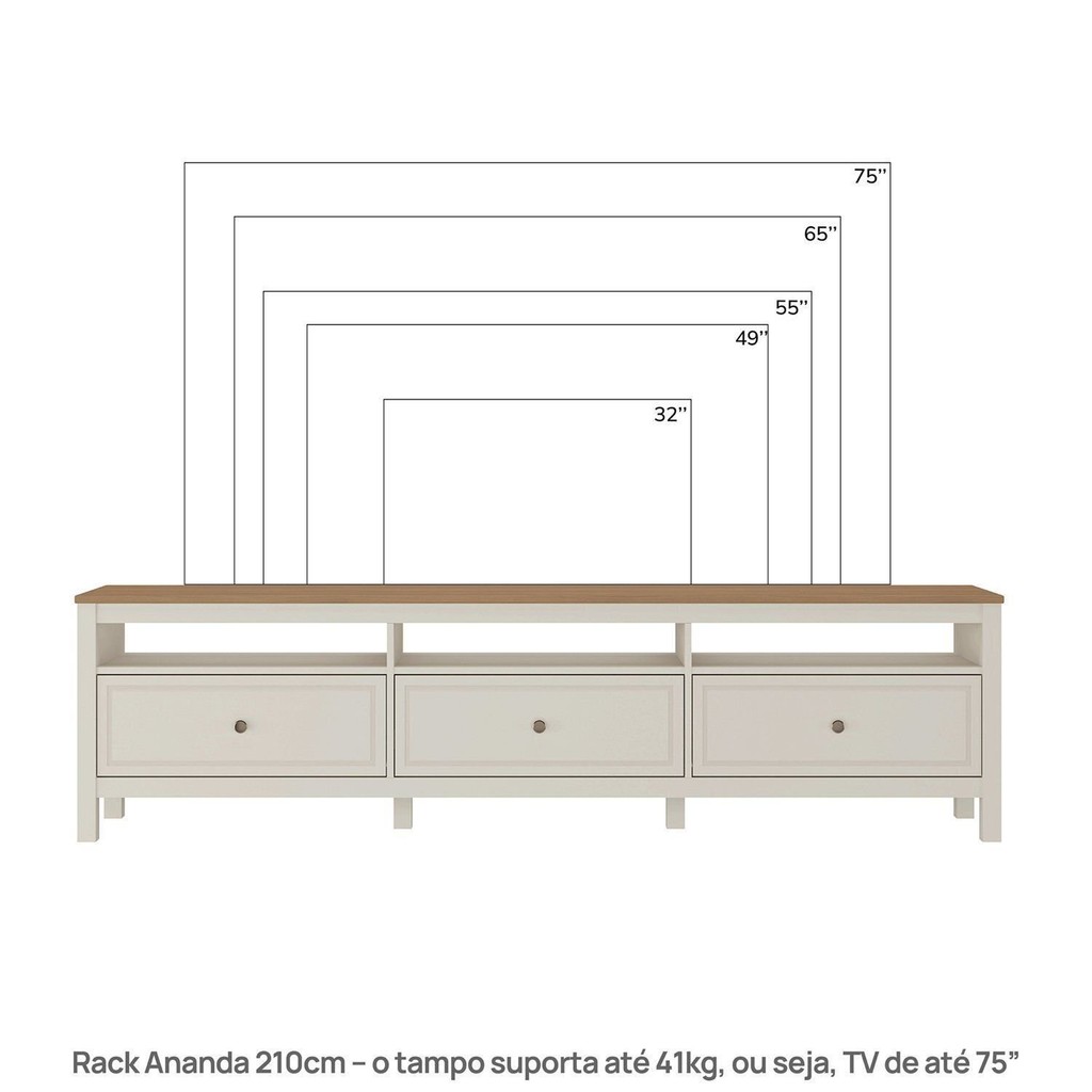 Rack para Tv 75 Polegadas 3 Gavetas 210cm Ananda Cabecasa Madeiramadeira