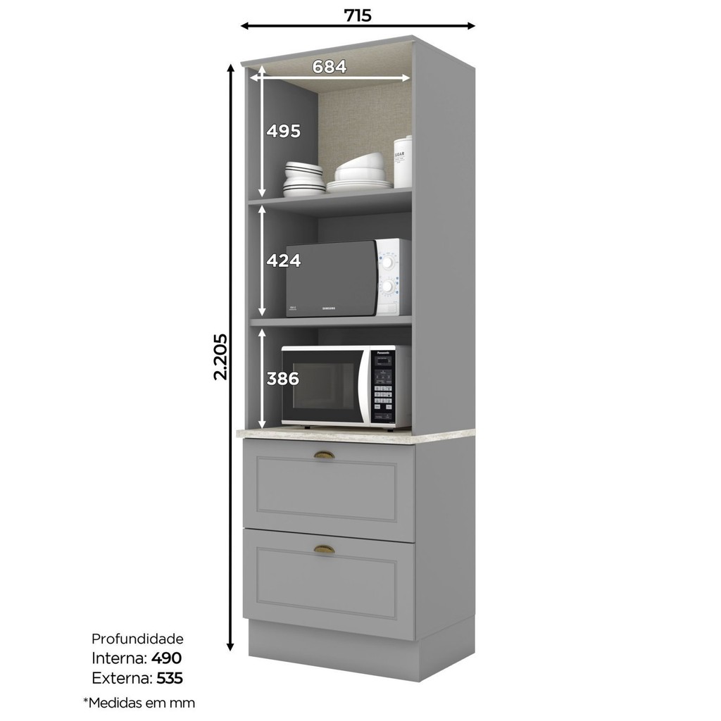 Torre Quente para Forno 2 Gavetas com Tampo Americana