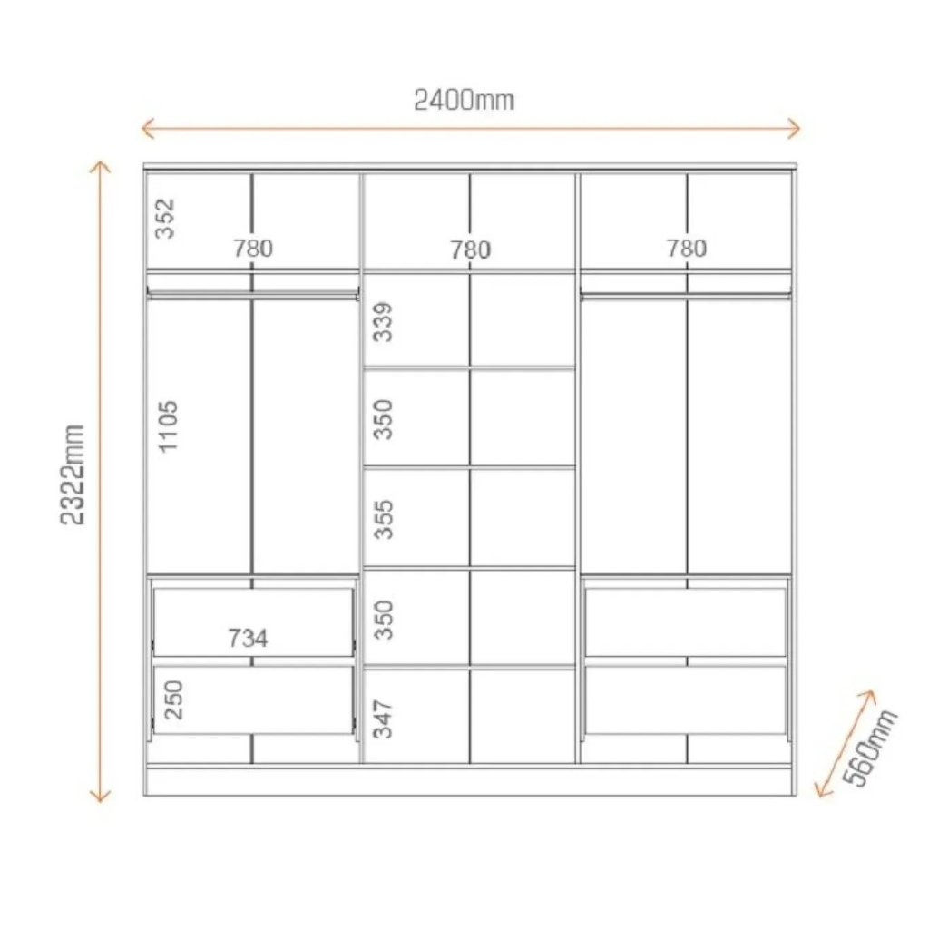 Guarda-roupa 100% Mdf Logan 6 Portas Olmo Italiano