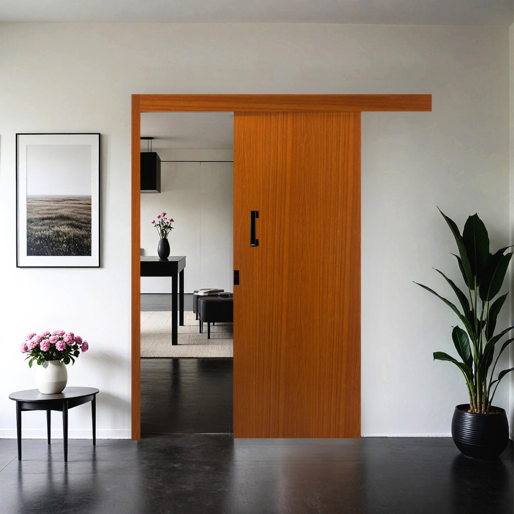 Porta de Correr Madeira 215x90cm Sobrepor Reversível Melamínico MGM Abertura Direita Mogno