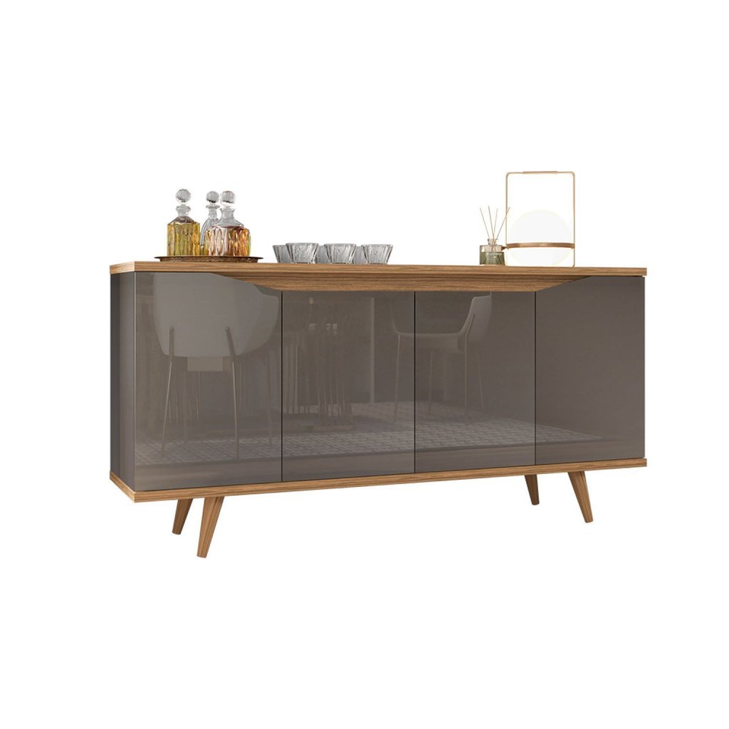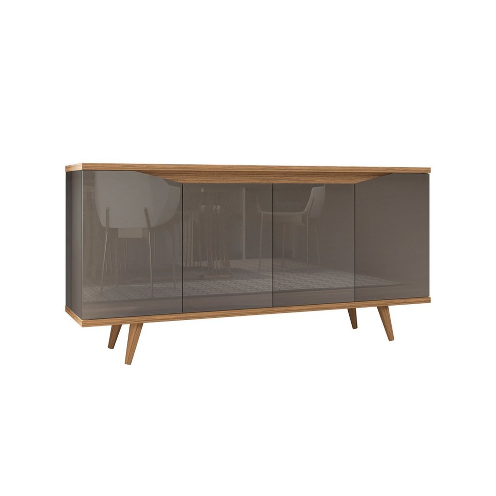 Buffet 160cm 4 Portas Pés em Madeira Maciça Grace Versátile Cinza Perola/Noce