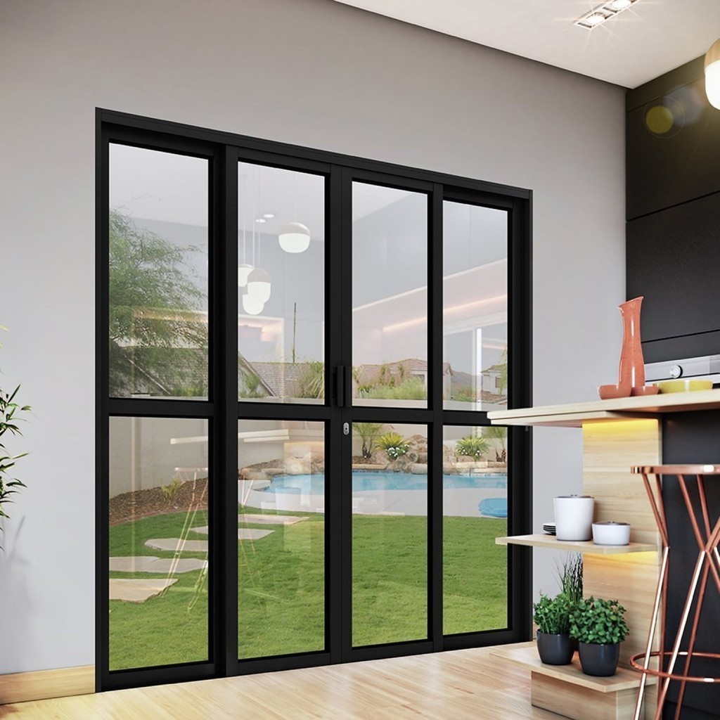 Porta de Aço de Correr Central 4 Folhas 213x200cm Aço Pronto Riobras