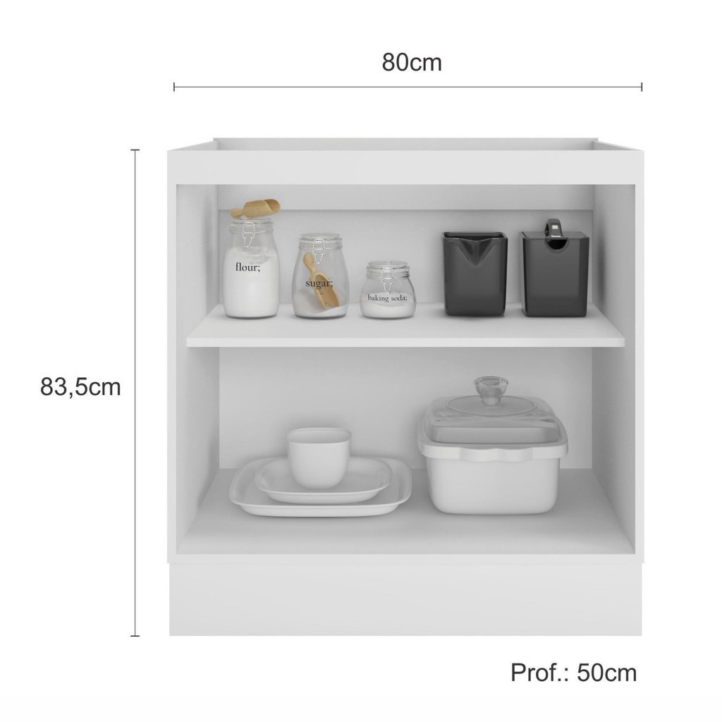 Balcão de Cozinha 80cm 2 Portas sem Tampo Unna Yescasa Branco