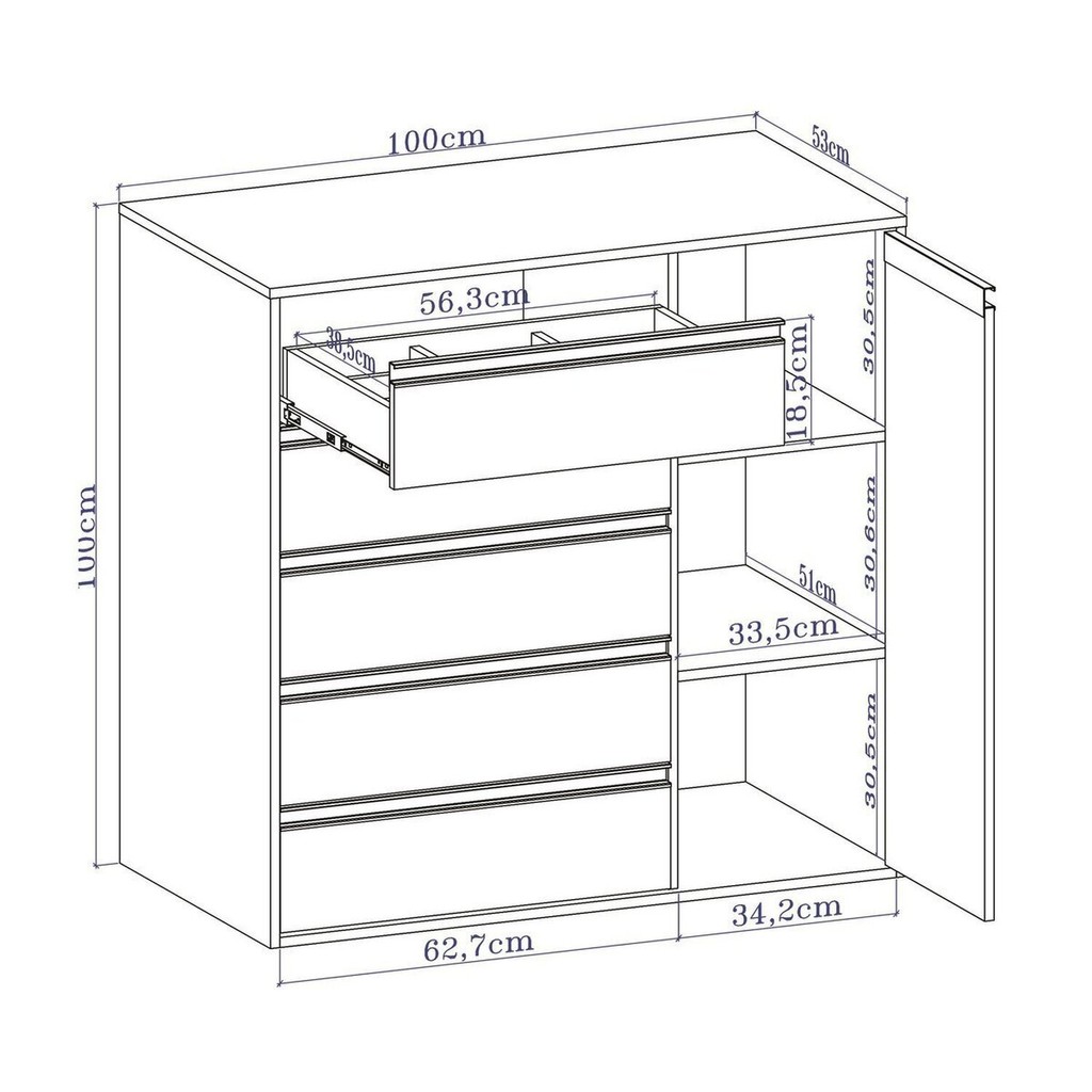 Cômoda Multiuso 5 Gavetas e 1 Porta 100% MDF Select Freijó/Off White