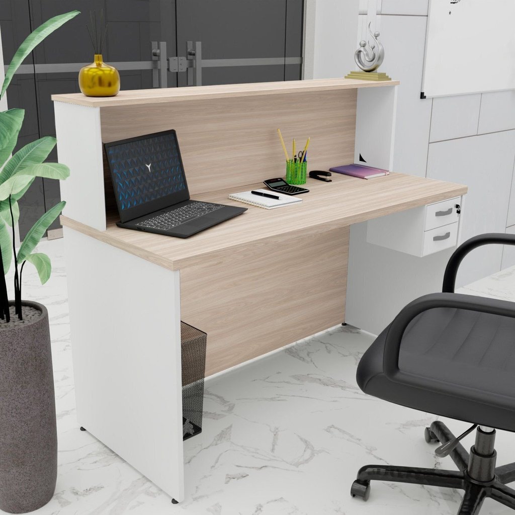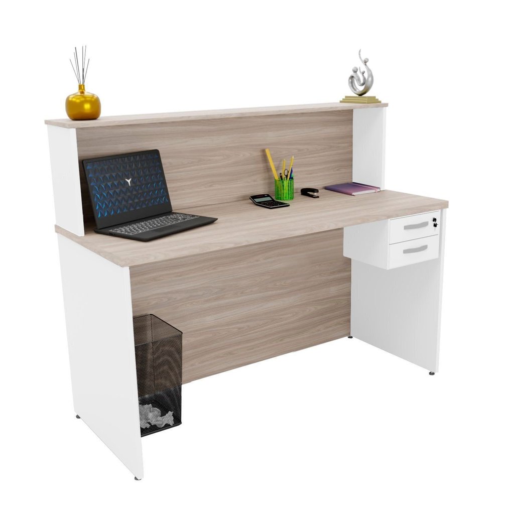 Balcão Atendimento Recepção Consultório com Gaveta 120x60cm Carvalho/Branco