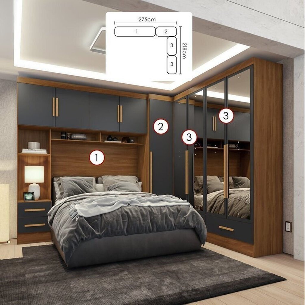 Quarto Modulado Casal 100% MDF 4 Peças 5 Portas 4 Gavetas com Maleiro e Espelhos Smart Plus Espresso Móveis