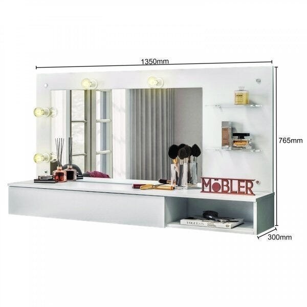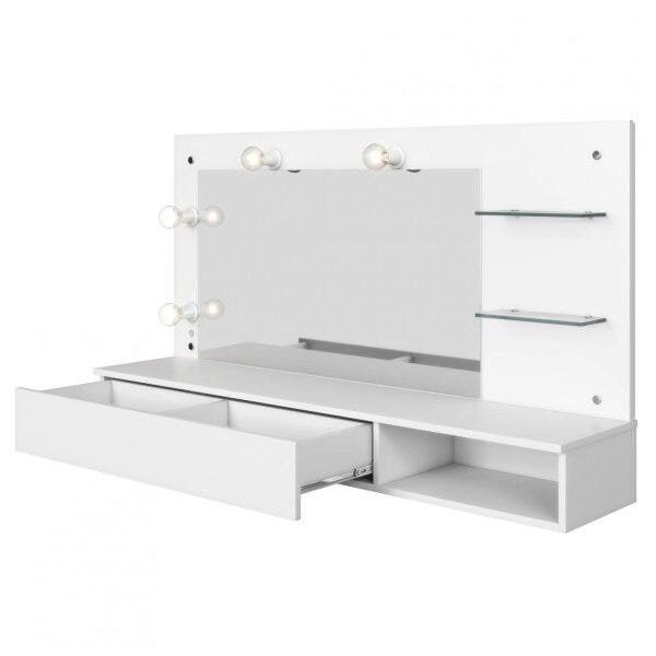 Penteadeira Camarim com Espelho Suspensa 1 Gaveta Lumiere Branco Fosco Liso