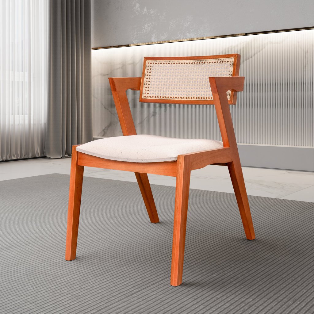 Kit 2 cadeiras Madeira Maciça, Rattan de Fibra 100% Natural e Estofada Verona Espresso Móveis Champagne/Off White