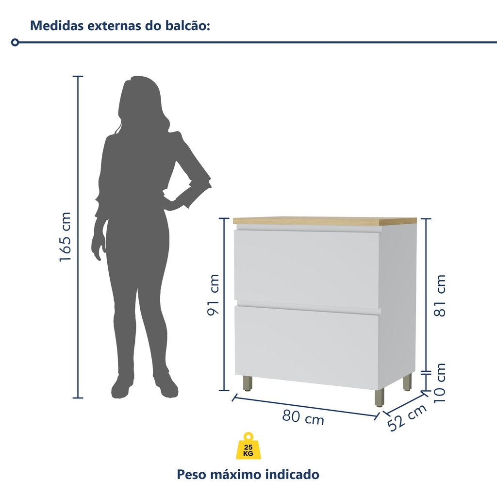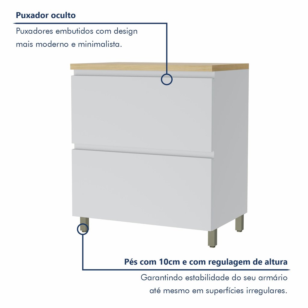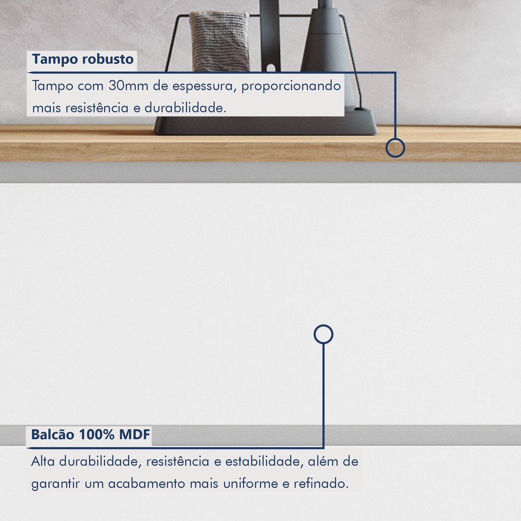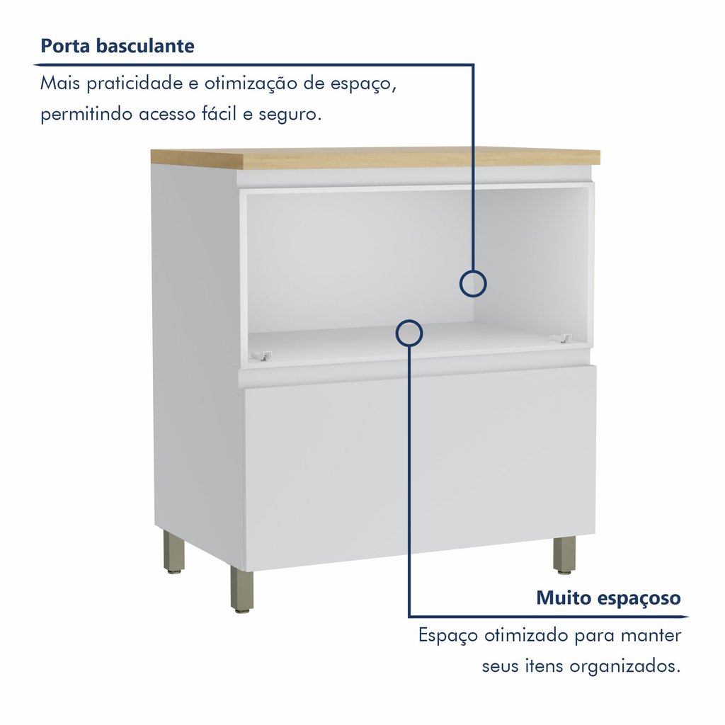 Balcão 1 Porta Basculante 1 Gaveta 80Cm 100% Mdf Rainha Branco/Nature