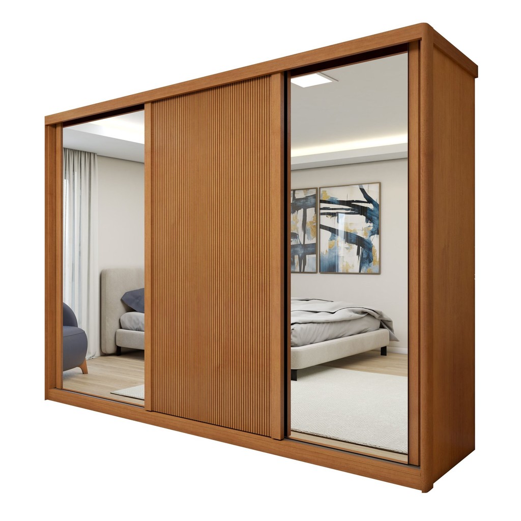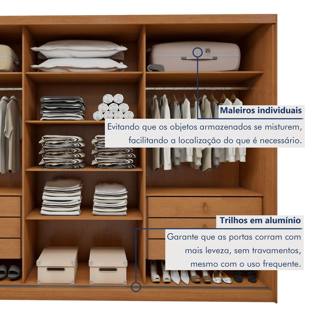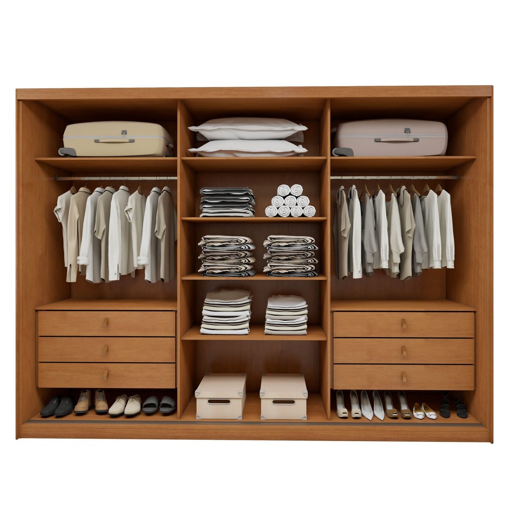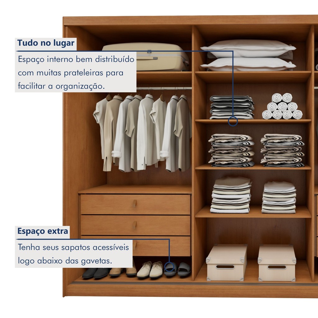 Guarda Roupa Ollie 3 Portas 6 Prateleiras 6 Gavetas 100% MDF Amêndoa Clean/Off White/Amêndoa Clean