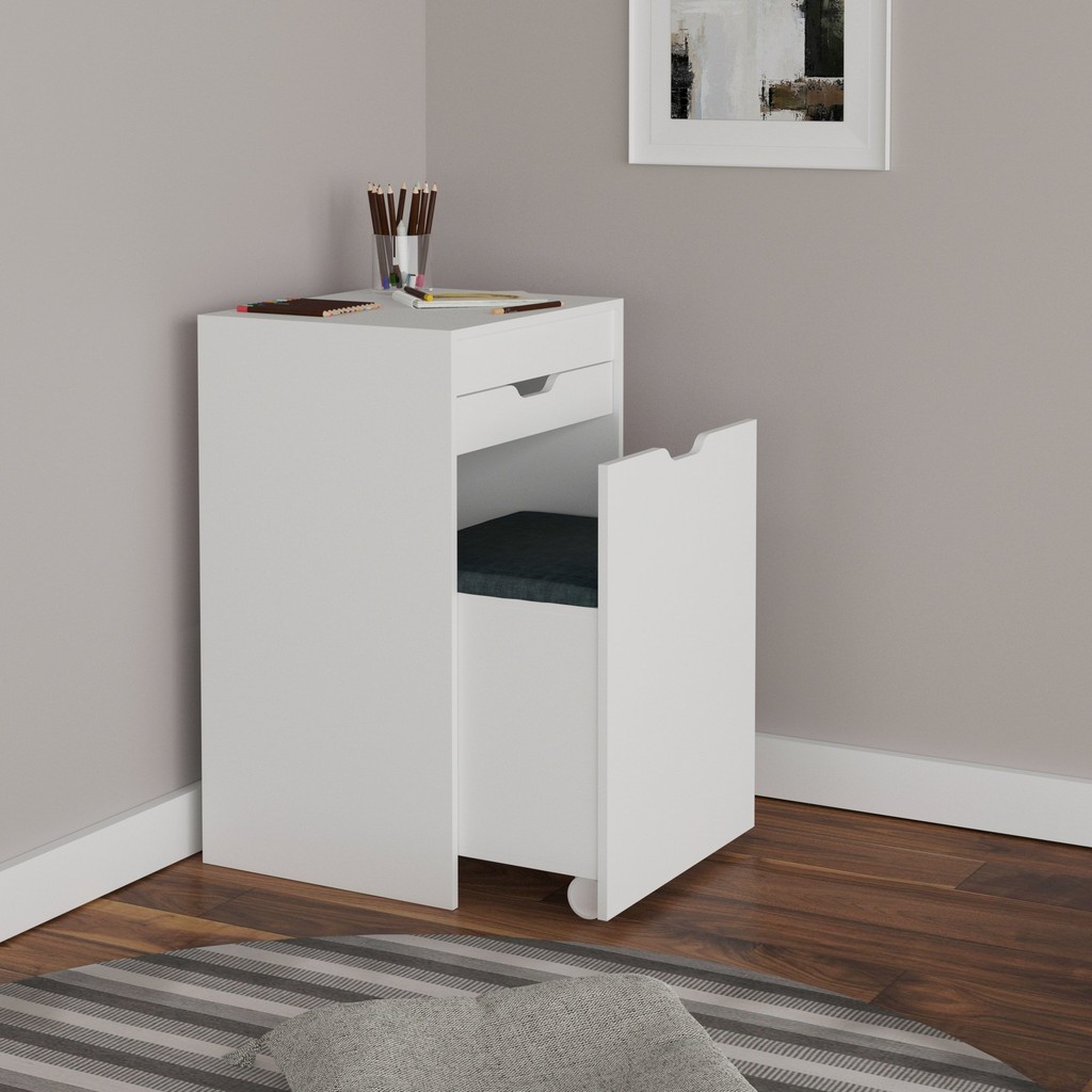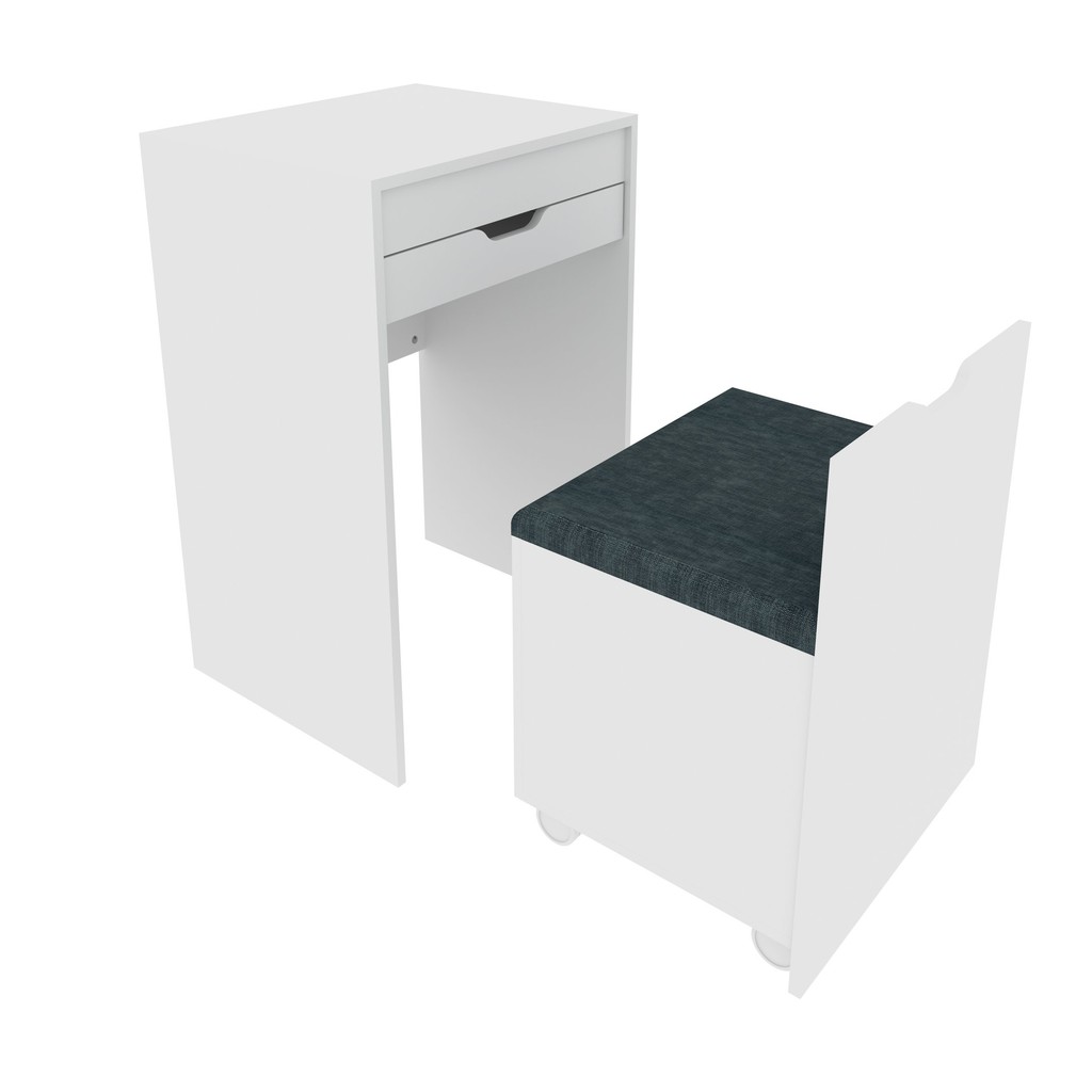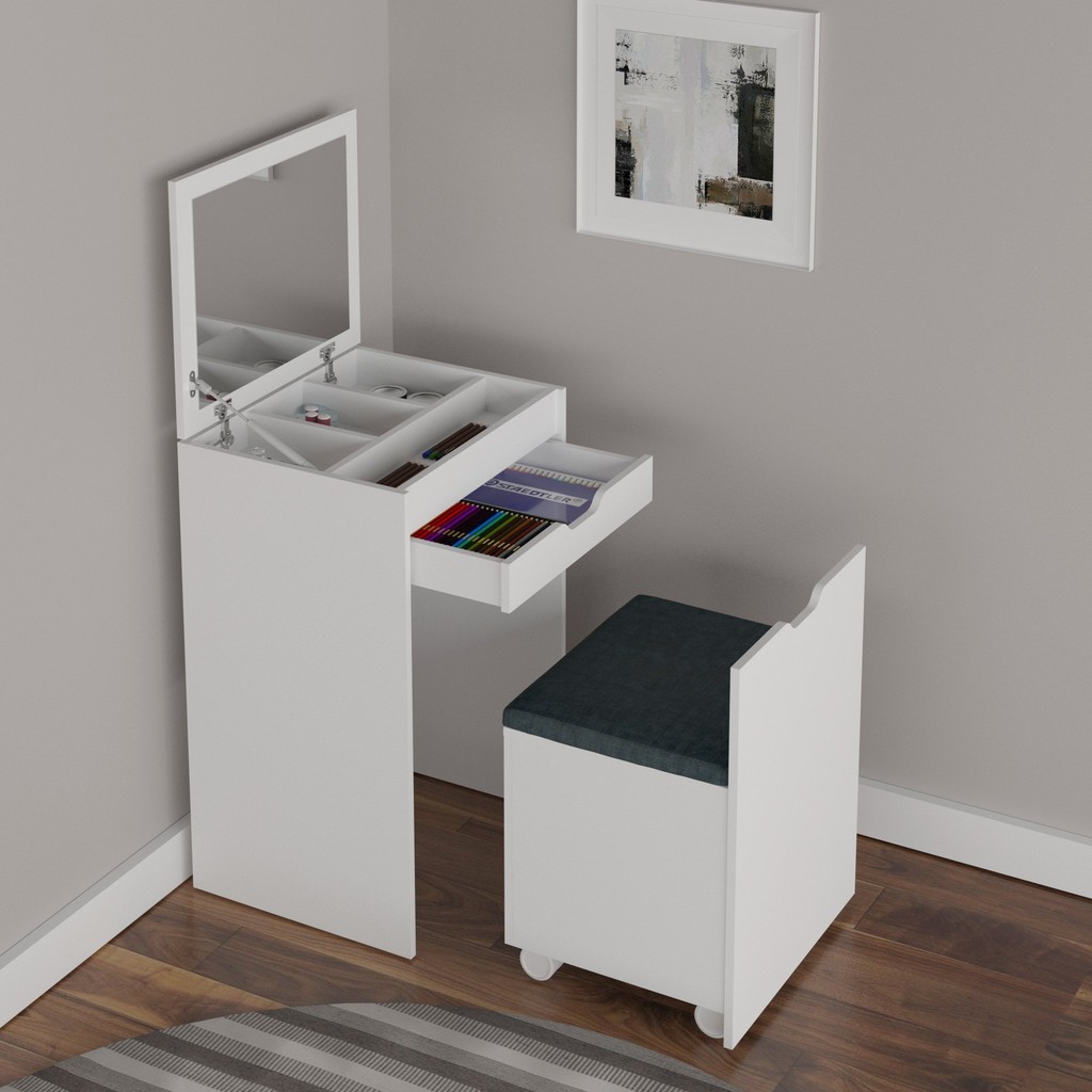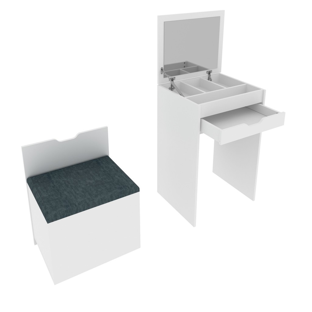 Penteadeira Compacta com Espelho e Baú Pe2007 Branco/Floral Marrocos