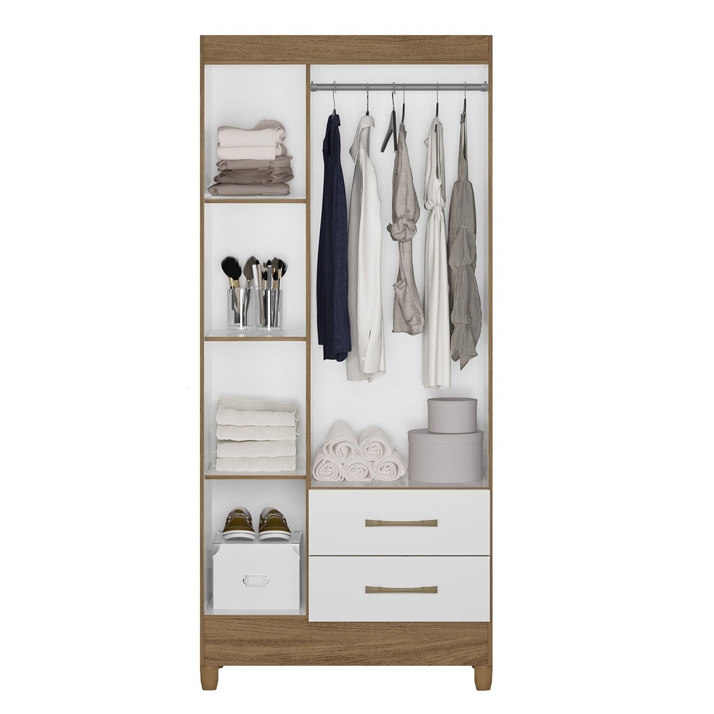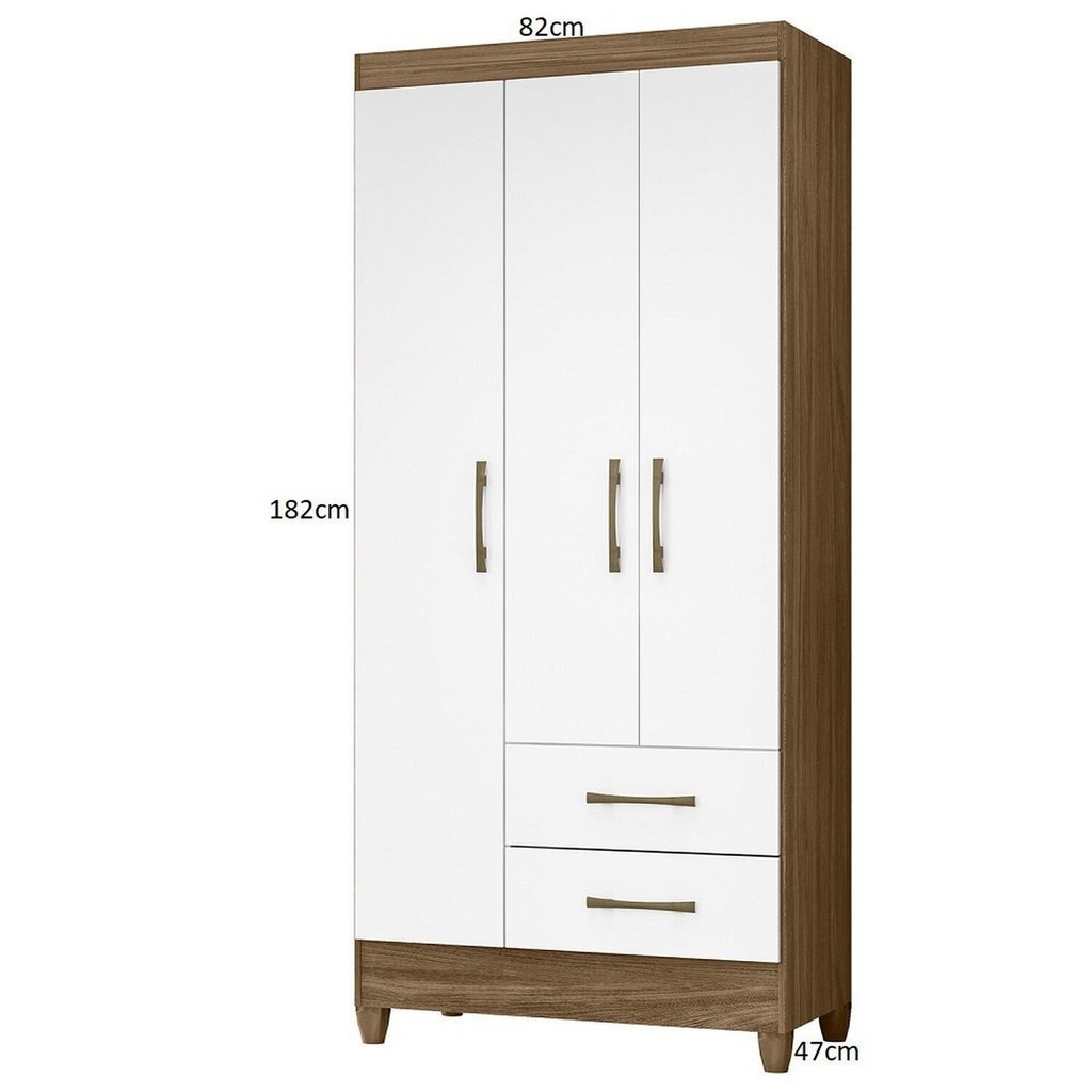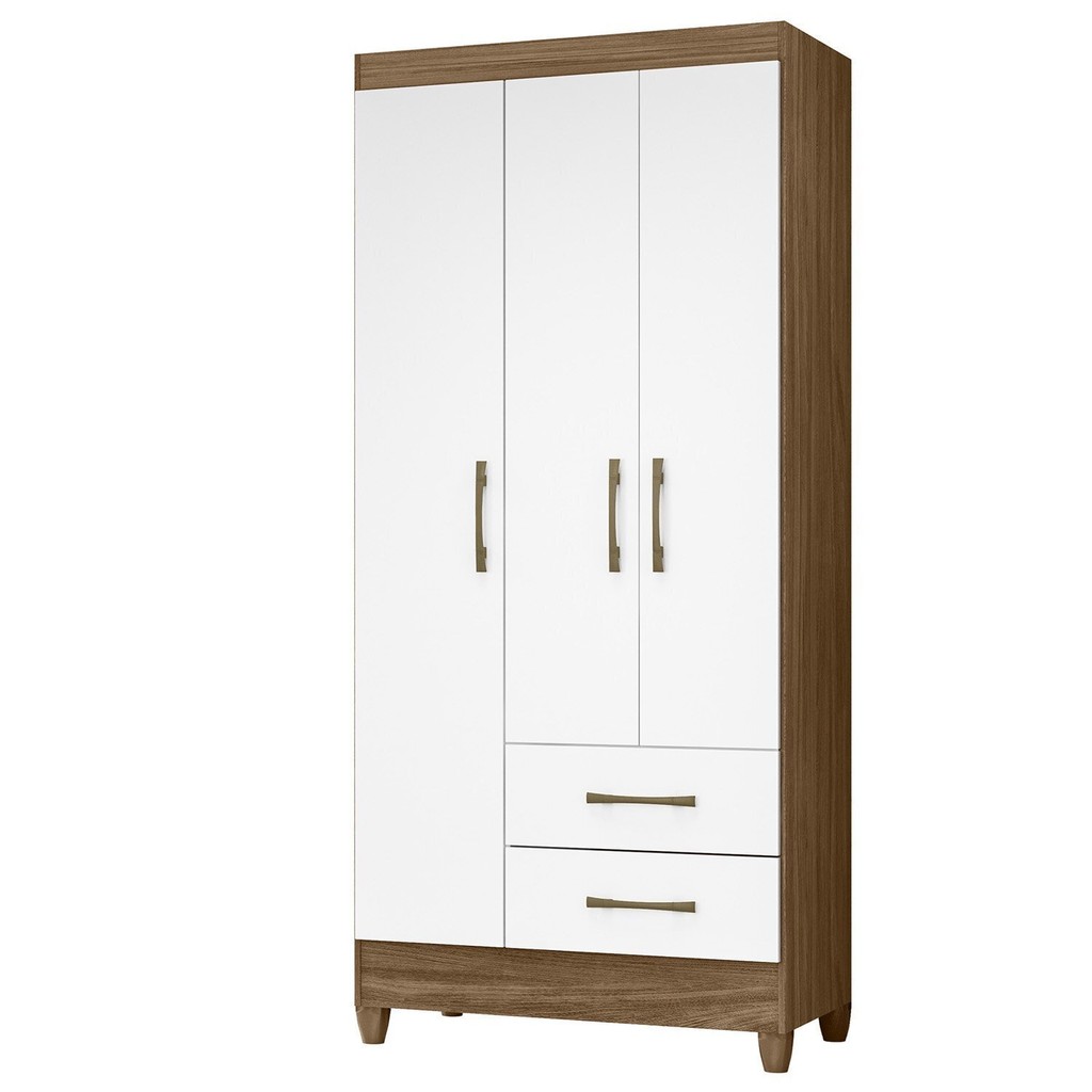 Guarda-Roupa Solteiro 3 Portas 2 Gavetas e Pés Lima Naturale/Branco