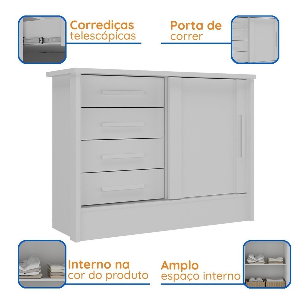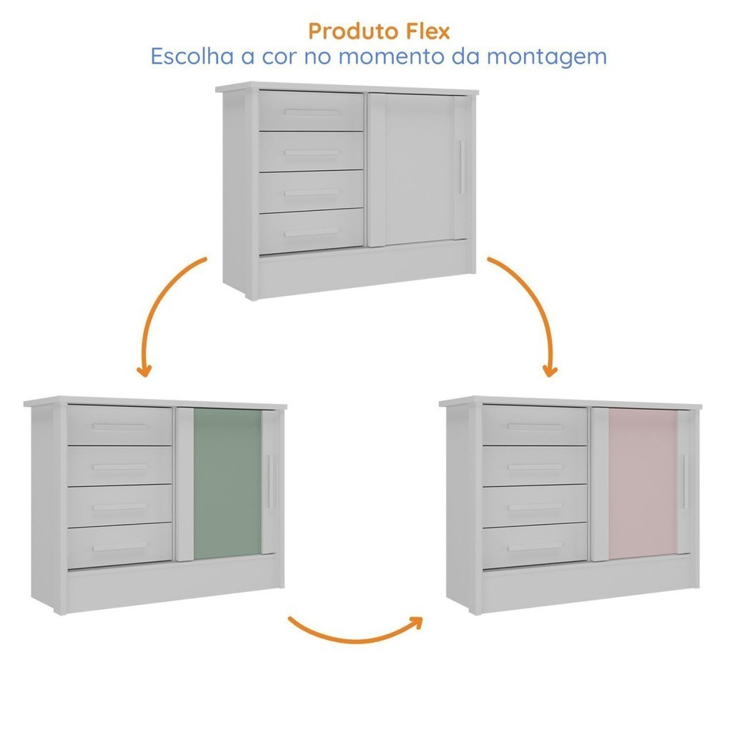 Cômoda Infantil 1 Porta 4 Gavetas Maya Espresso Móveis Rosa/Branco