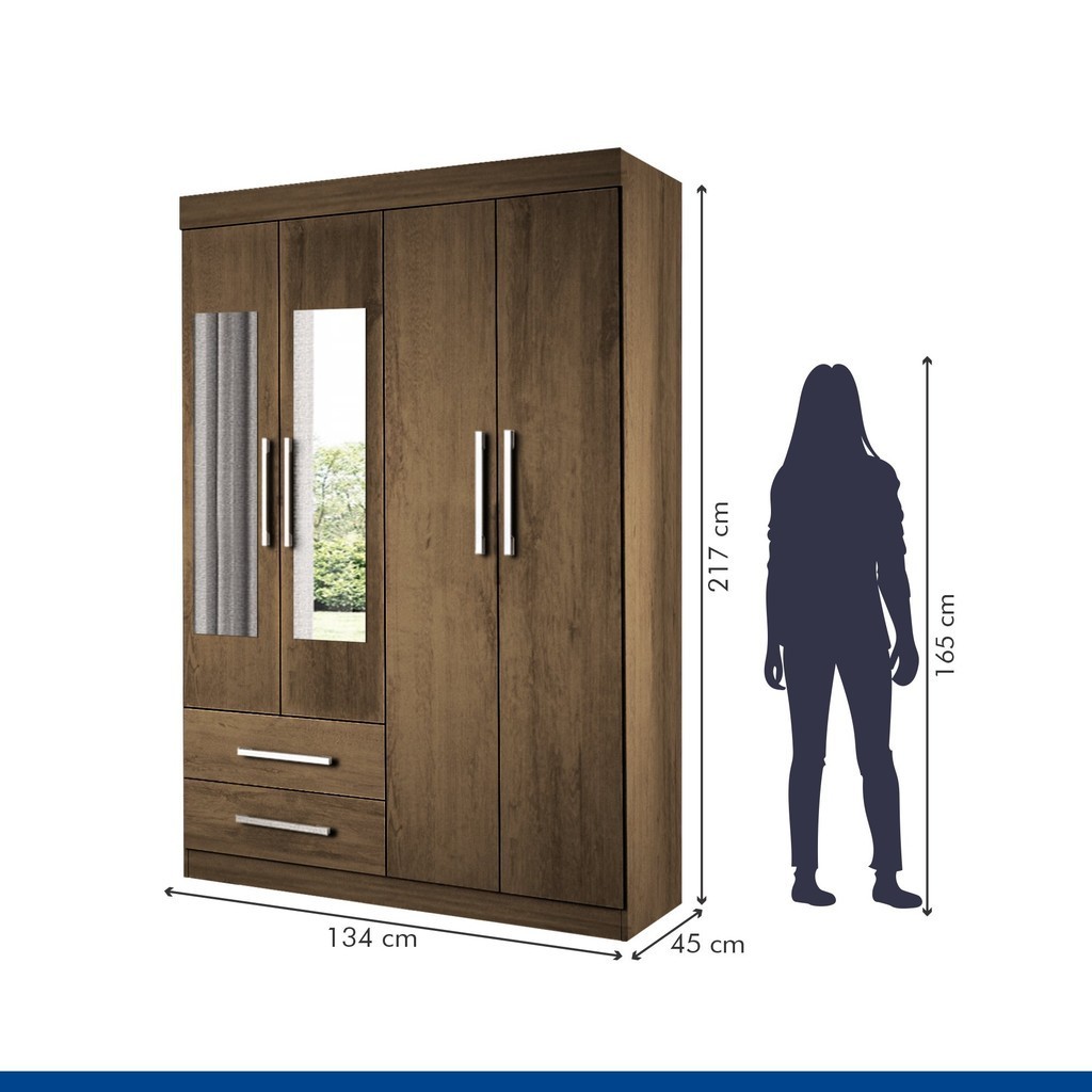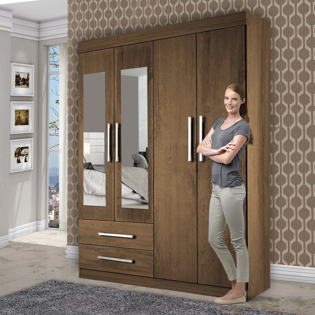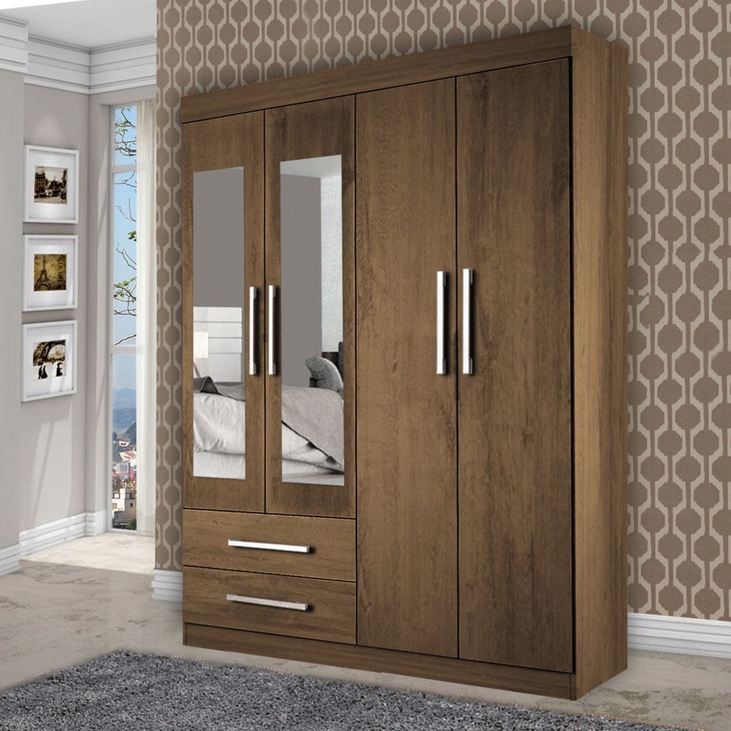 Guarda-Roupa Solteiro 4 Portas 2 Gavetas e 2 Espelhos Madri Espresso Móveis Freijó