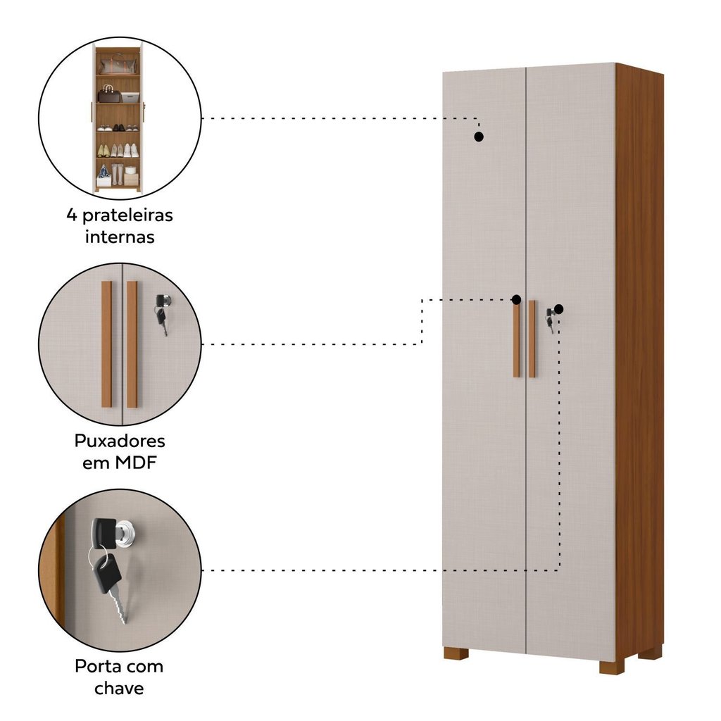 Armário para Escritório 2 Portas com Chave Nt 4020 Freijó Trend/Off White