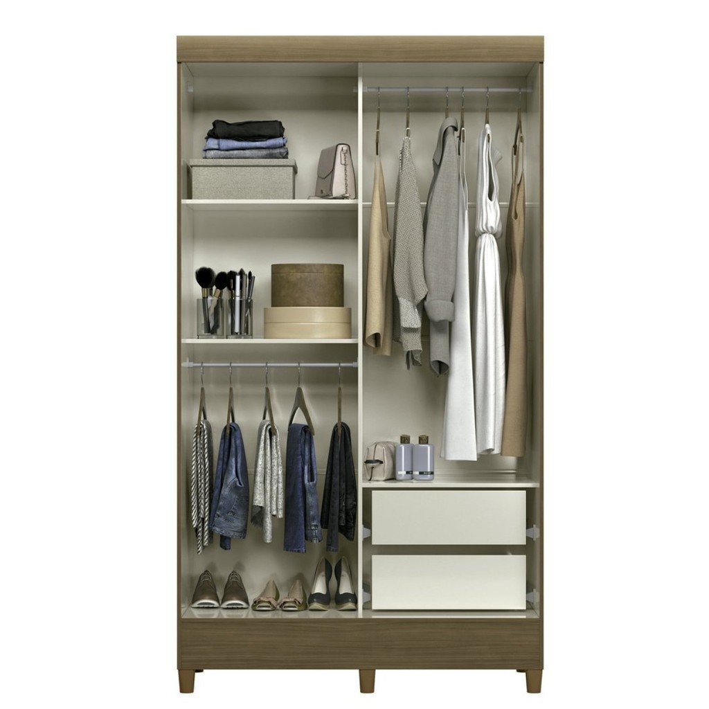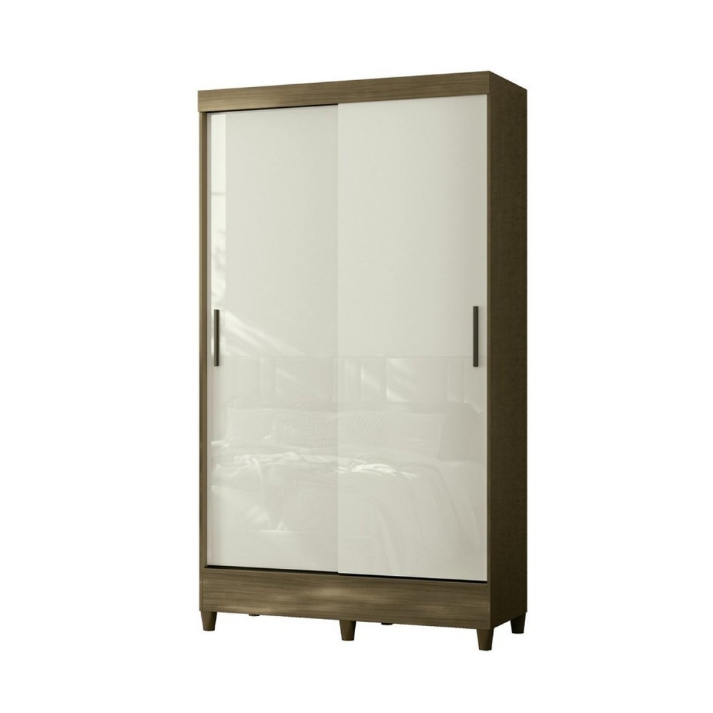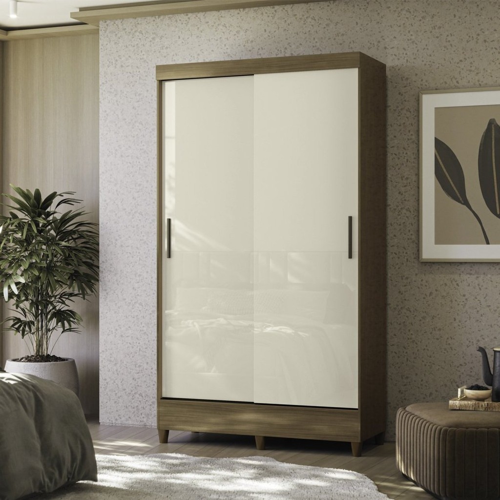 Guarda Roupa 2 Portas de Correr com Pés Off White/Jequitibá