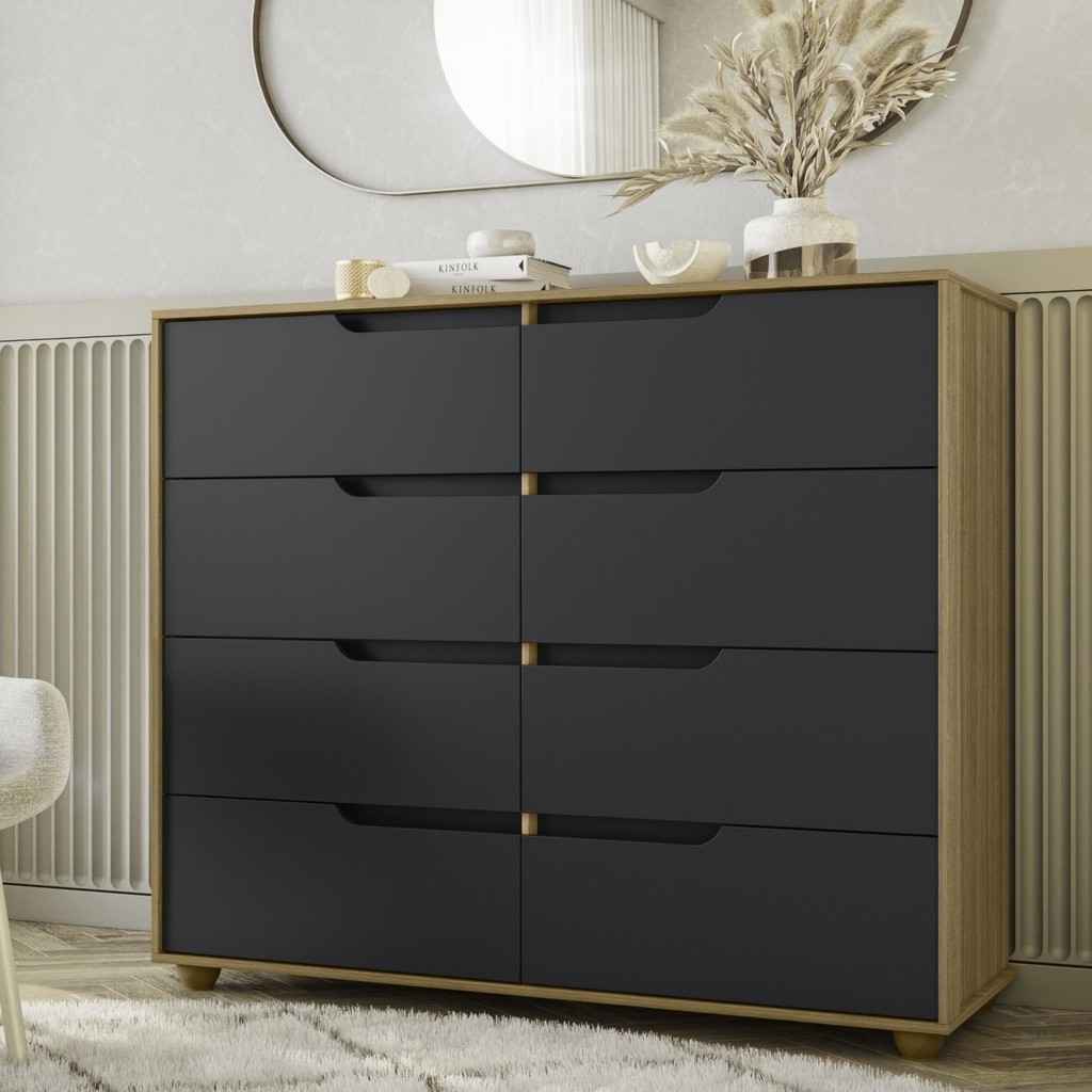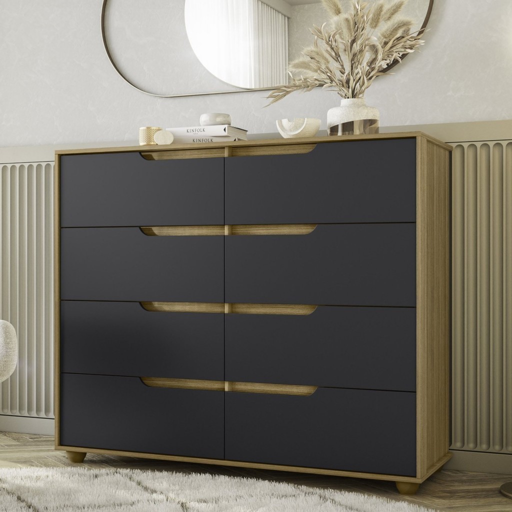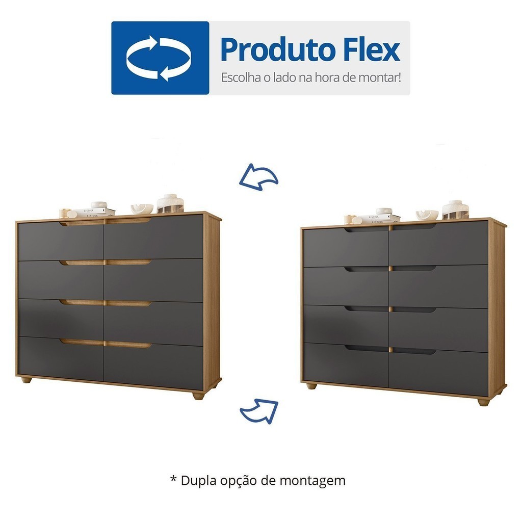 Cômoda 8 Gavetas Doble Freijó/Titanium