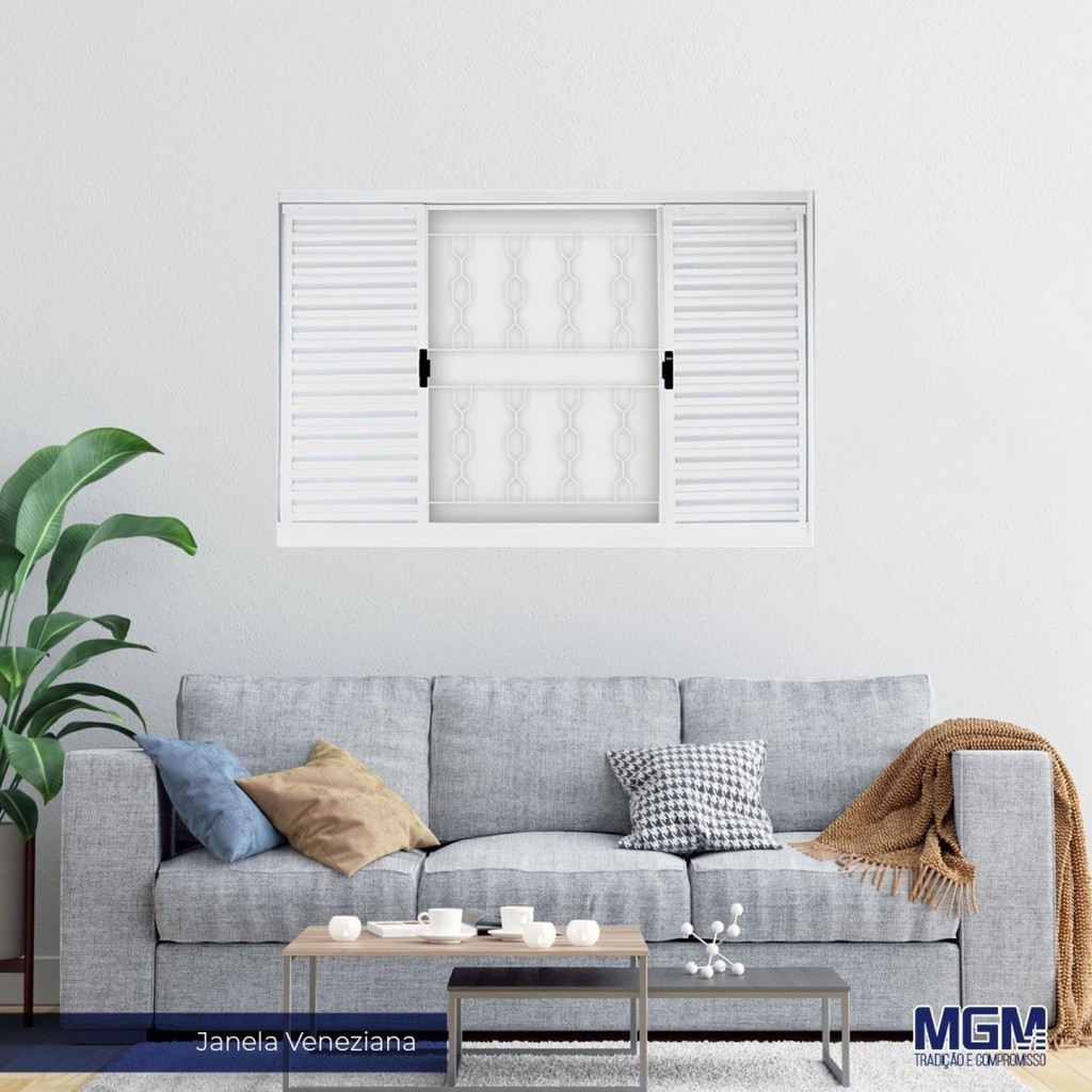 Janela de Aço Veneziana de Correr 100x100cm 4 Folhas com Grade Minas Sul MGM