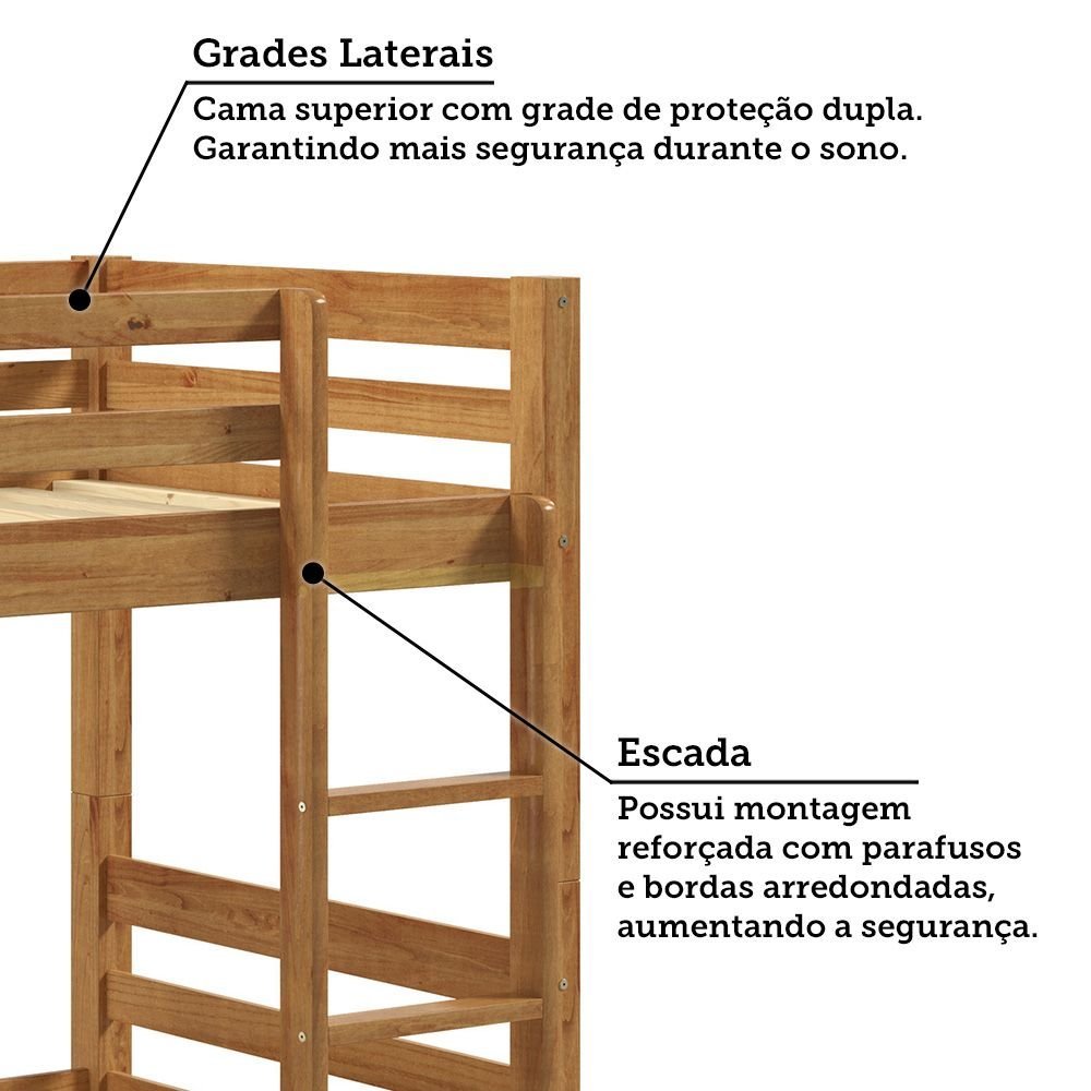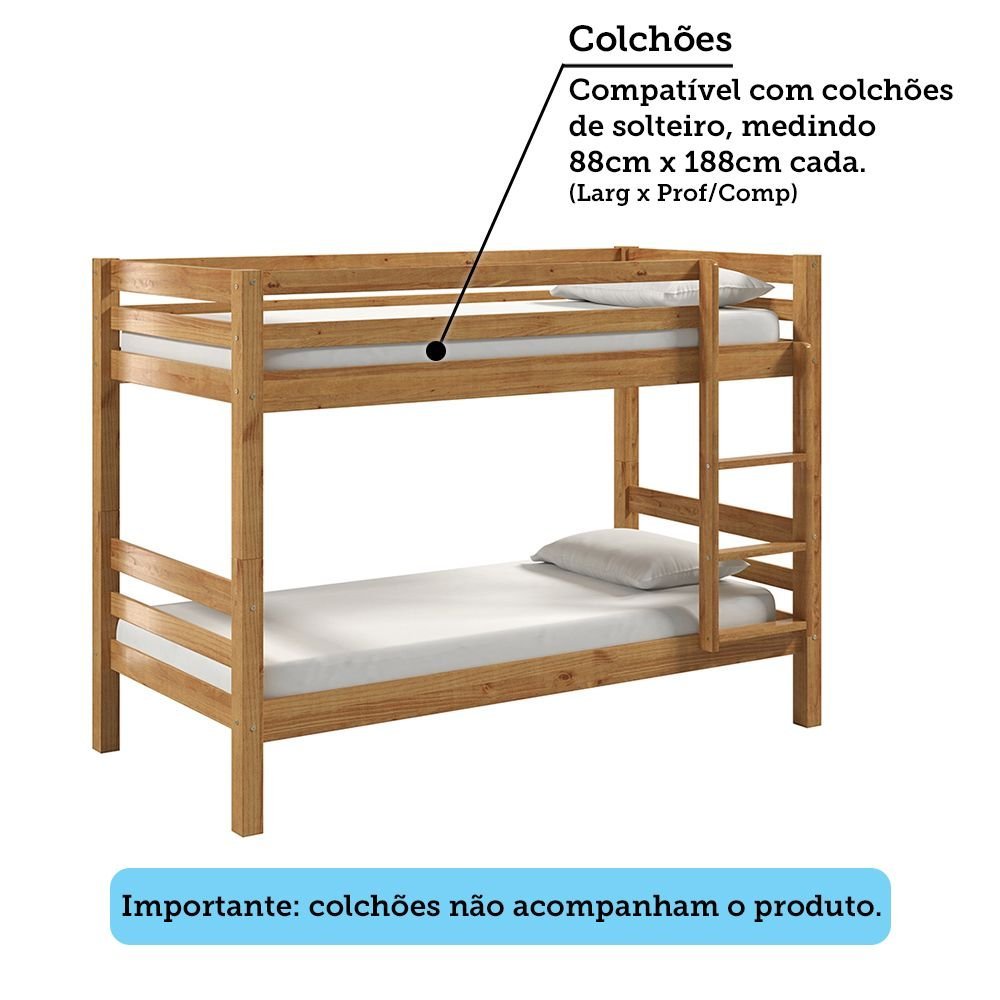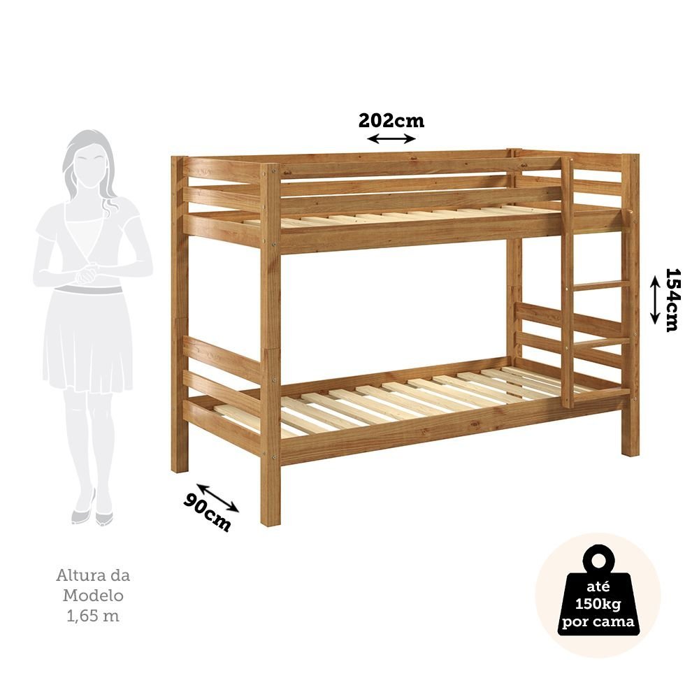 Beliche Solteiro 100% Madeira Maciça La Paz Espresso Móveis Beliche