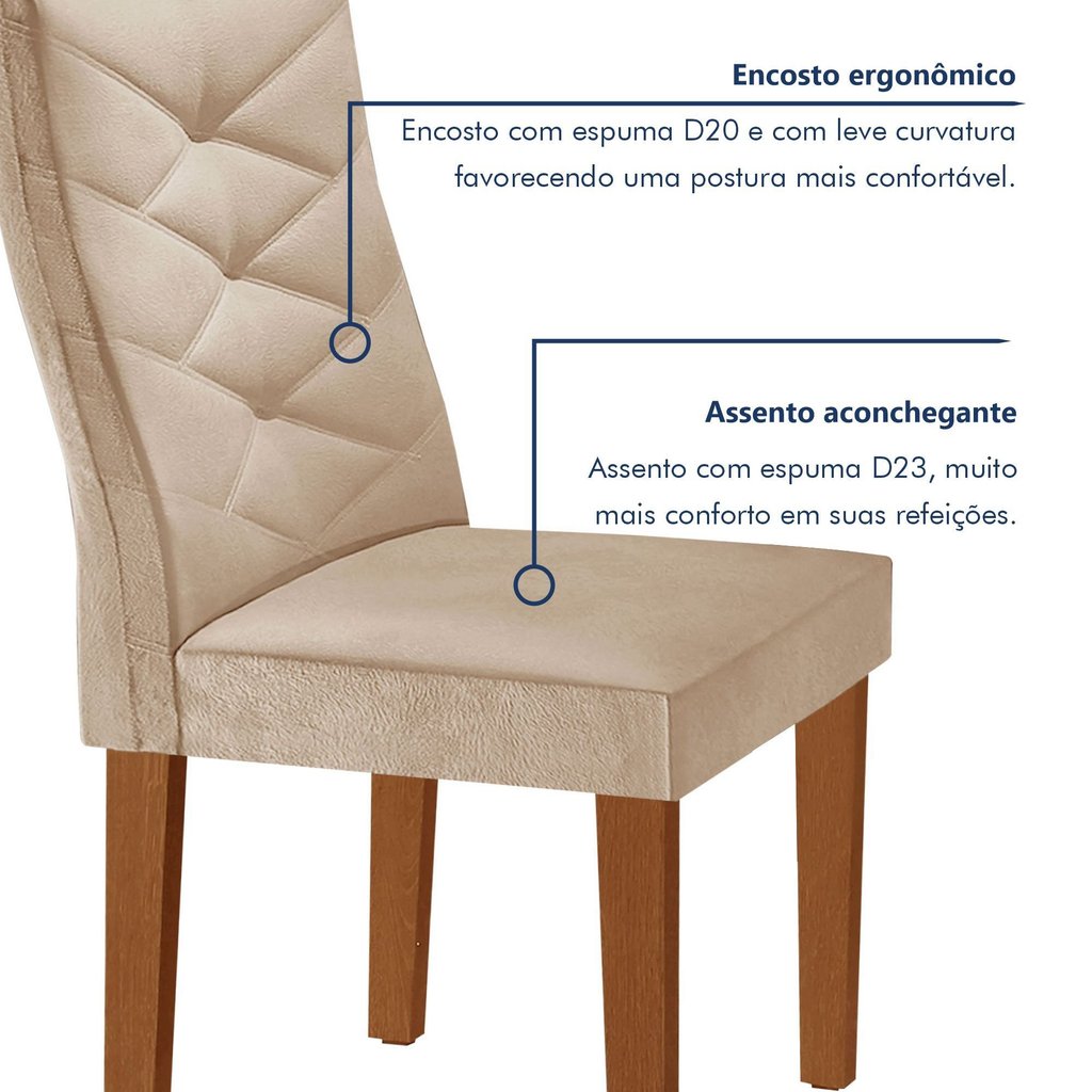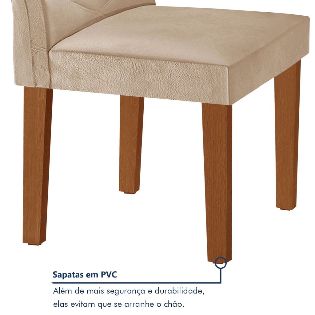 Conjunto Mesa Redonda com Vidro e 4 Cadeiras Tampo Barcelona Yescasa Cinamomo/Off White/Suede Pena