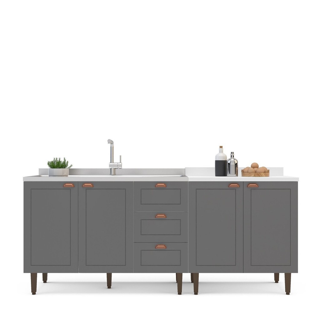 Cozinha Pérola 2 Peças Balcão 2 Gavetas 3 Portas e Balcão 2 Portas Yescasa Branco/Cinza