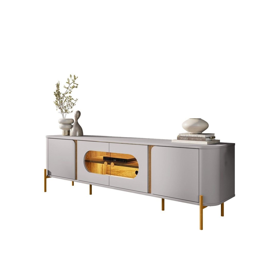Rack para TV até 75 Polegadas com Led Bordas Arredondadas Juquehy Off White/Cinamomo