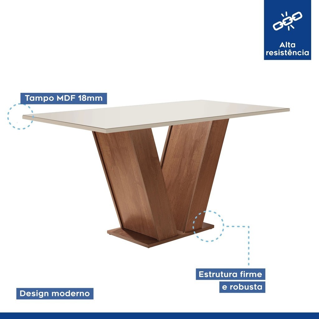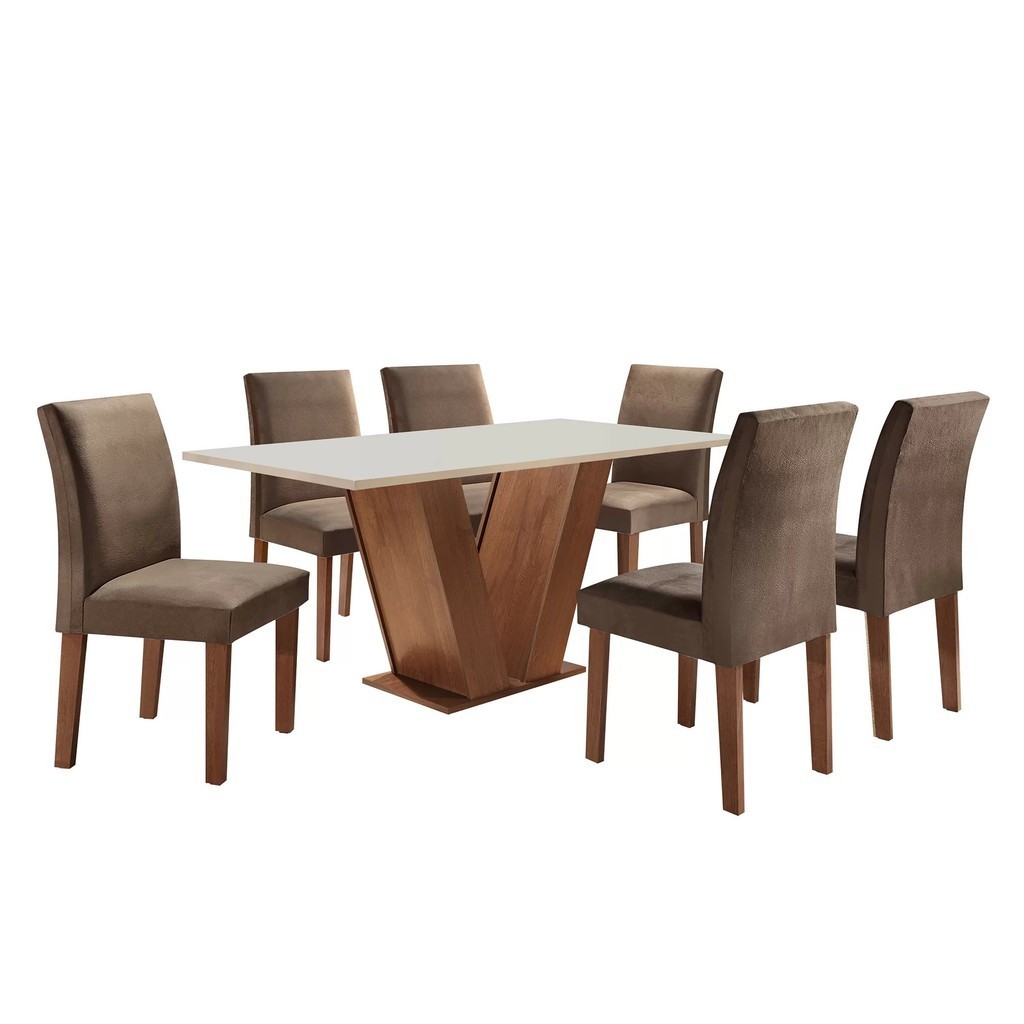 Conjunto Sala de Jantar Mesa Tampo Mdf 6 Cadeiras Espanha Yescasa Chocolate/Off White/Tecido Animale Marrom