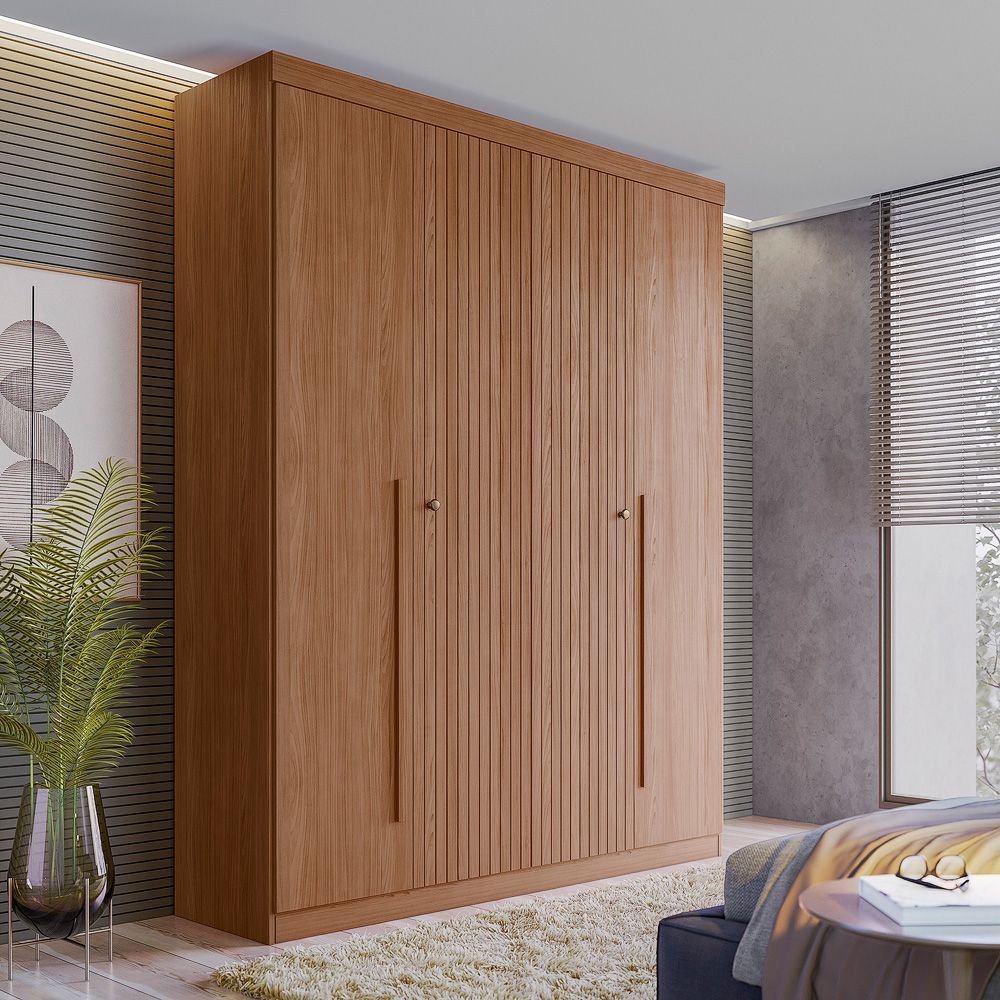 Guarda Roupa Solteiro Ripado 4 Portas 2 Gavetas Antony Jatoba/Jatoba