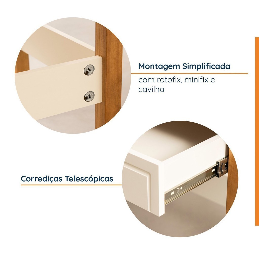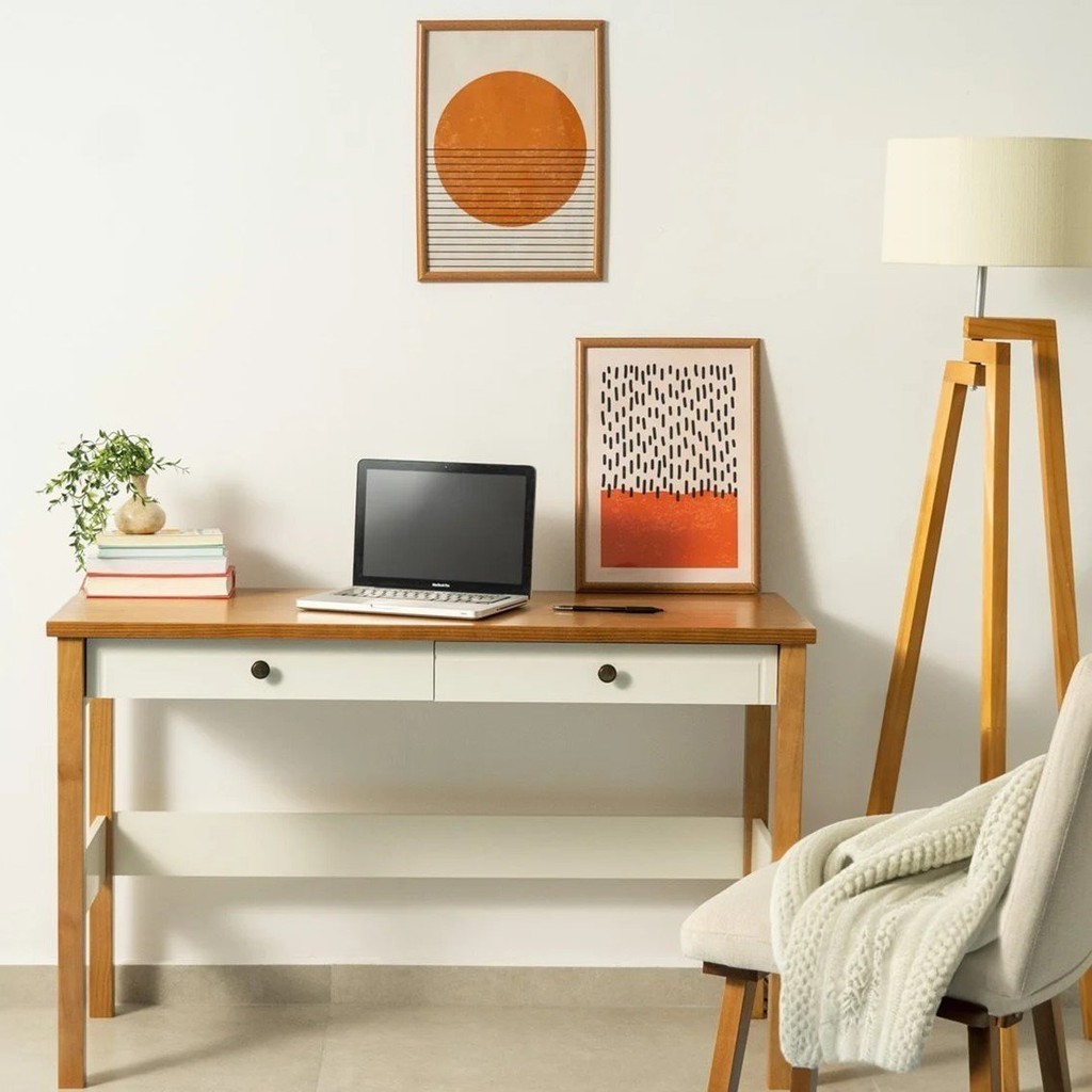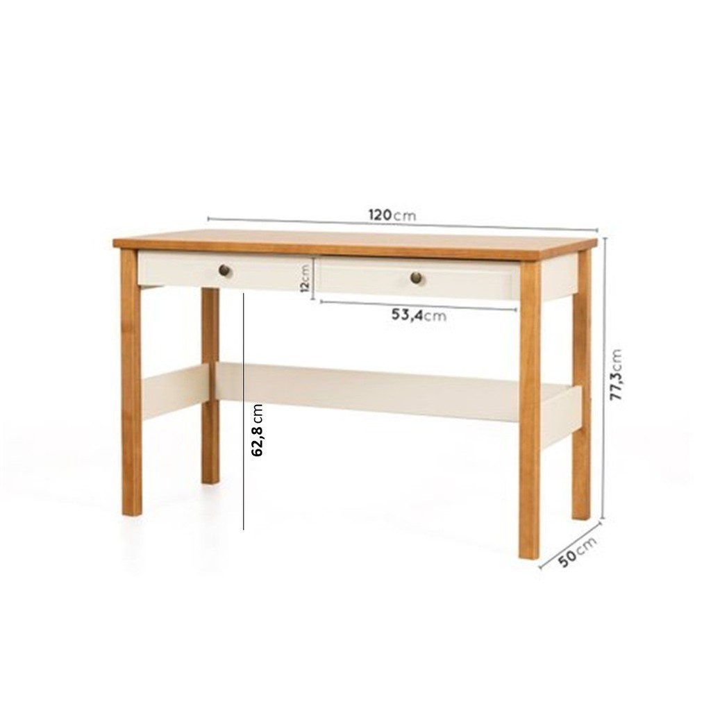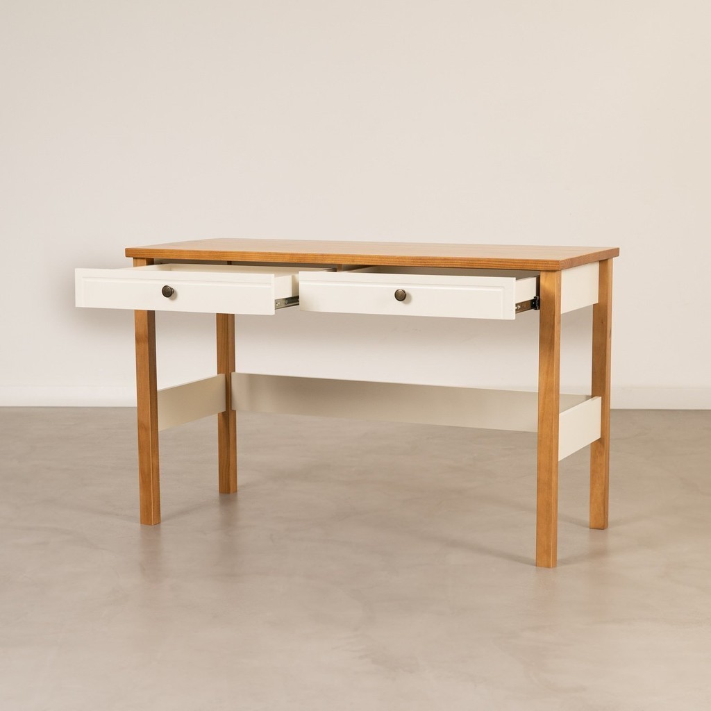 Escrivaninha Mesa Escritório 120cm 2 Gavetas Ananda CabeCasa MadeiraOriginals Off White/Mel
