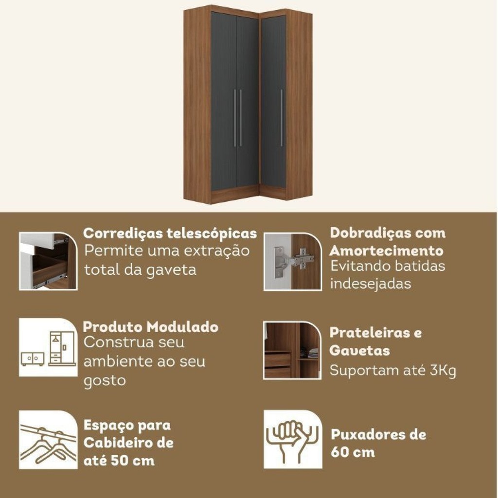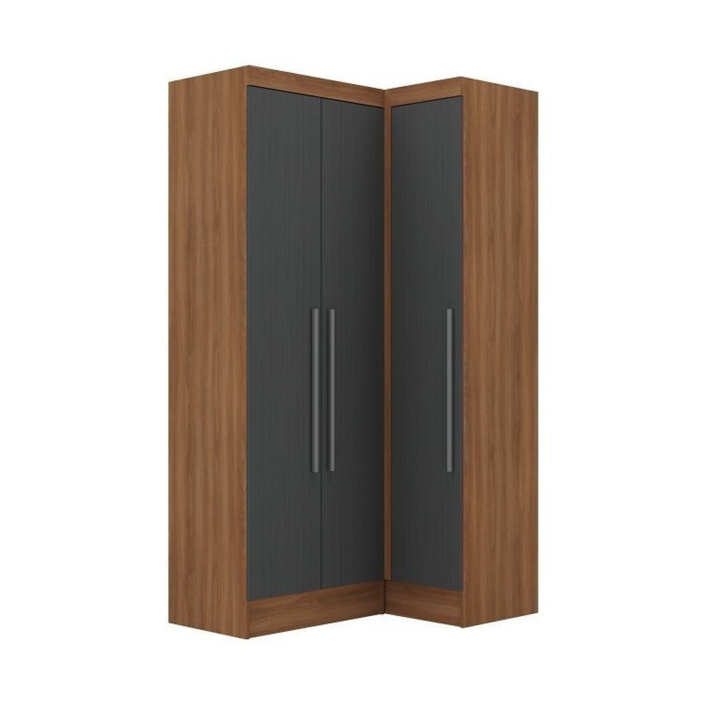 Guarda-roupa Modulado Viena 3 Portas 4 Gavetas 2 Peças Espresso Móveis Grafite/Nogal