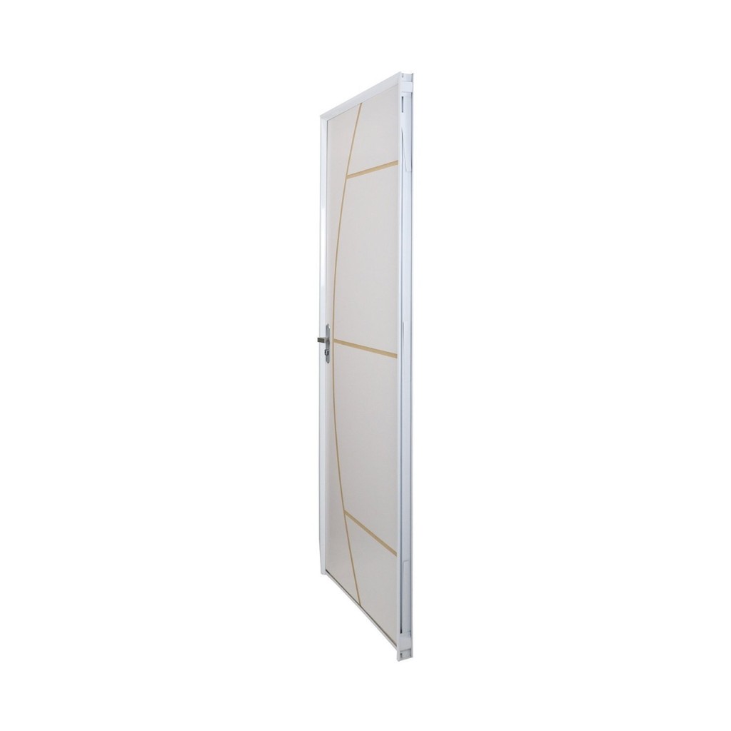 Kit Porta de Madeira Decorada 212x65cm com Batente de Aluminio 3,6cm Gáucha Mgm Abertura Direita Branco