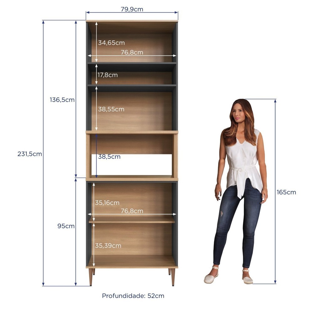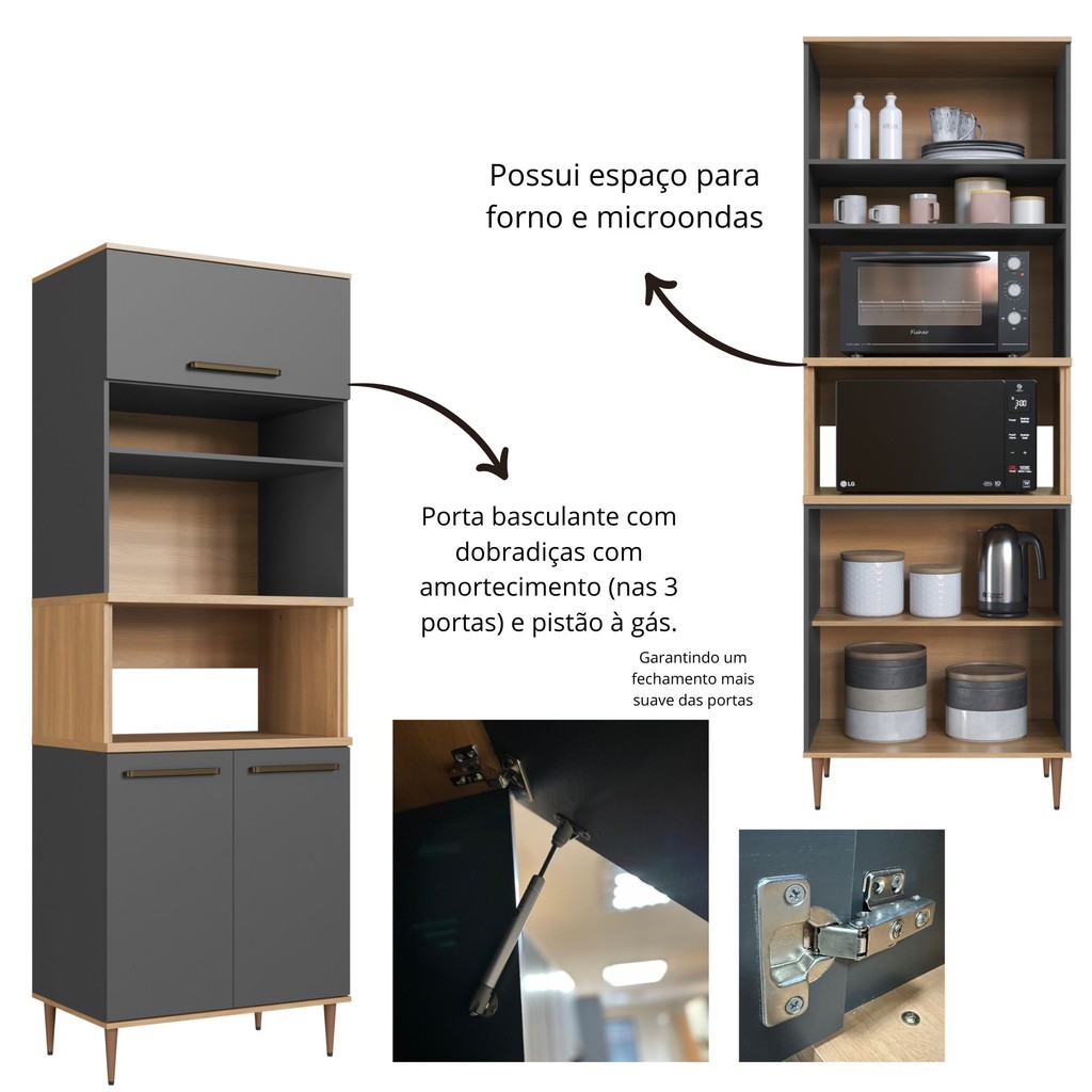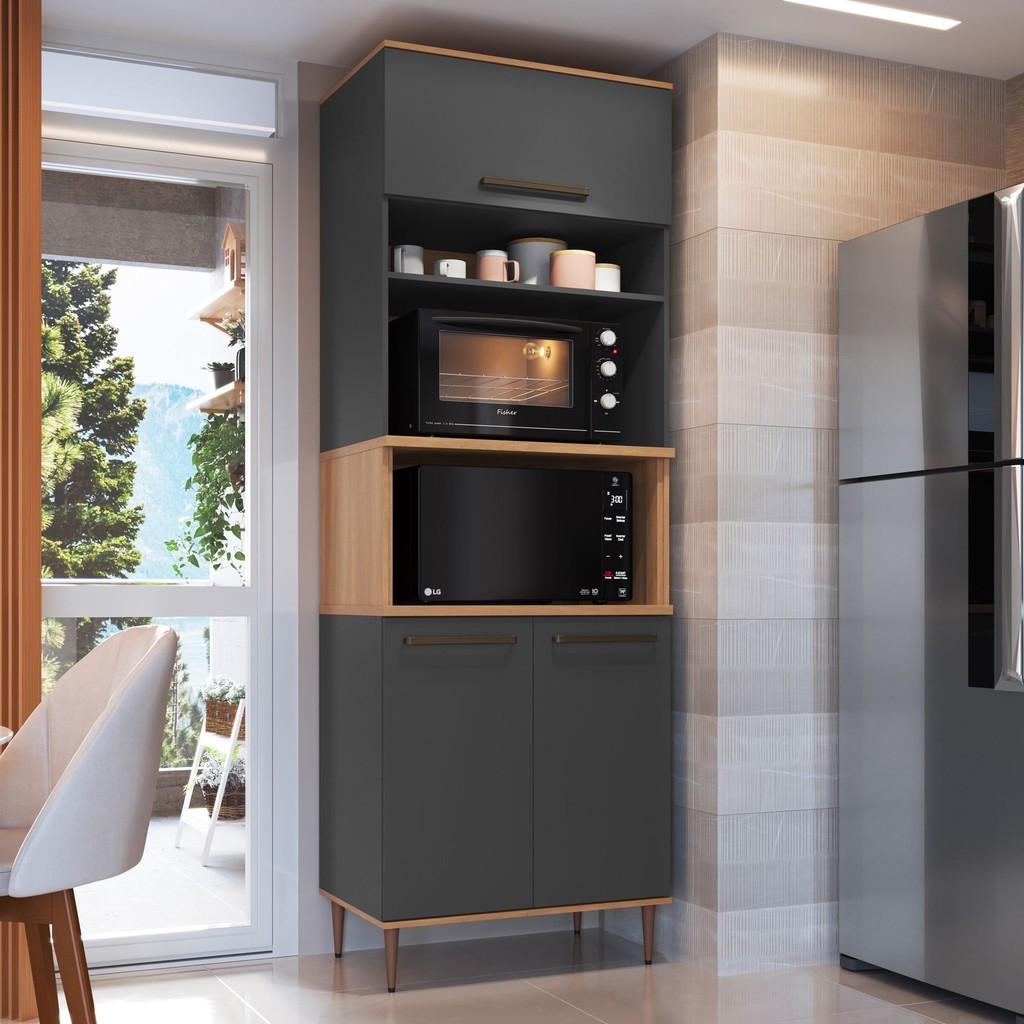 Armário Torre Quente 0,80m 2 Fornos 3 Portas Isabelle Freijó/Grafite