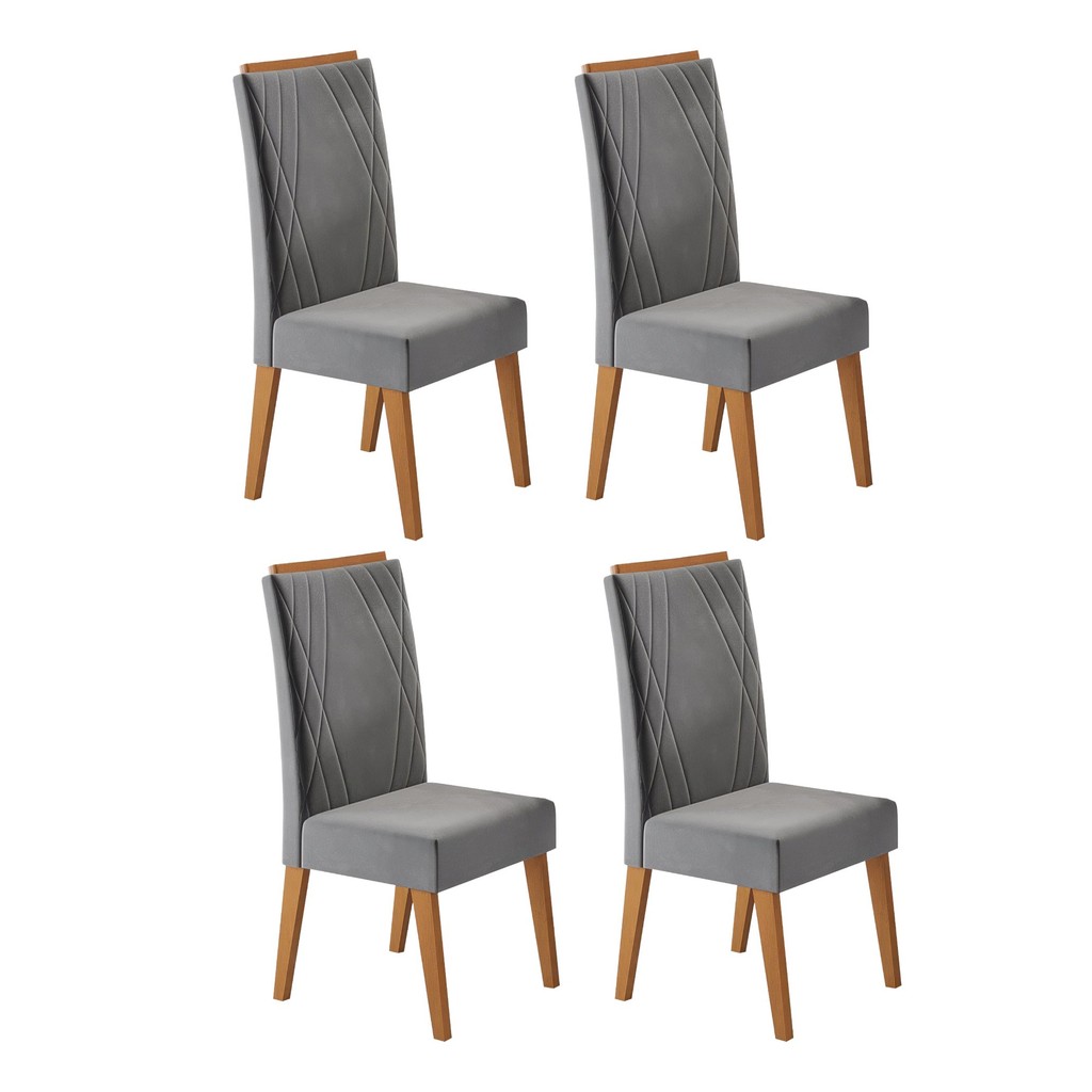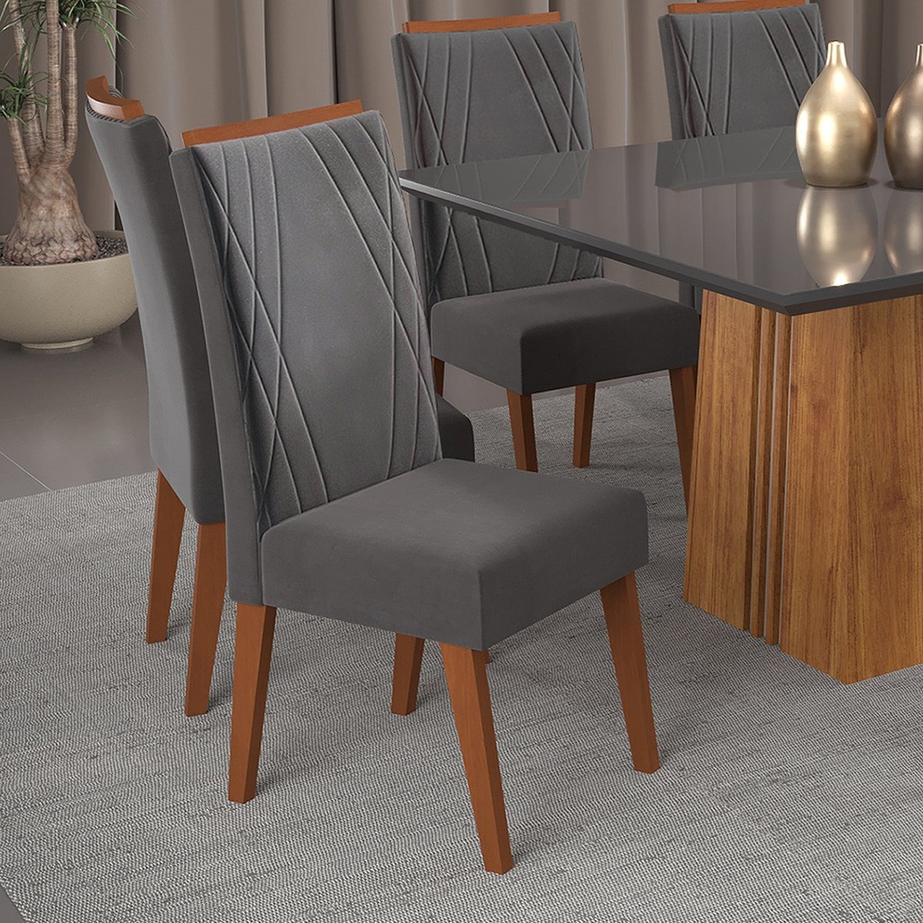 Kit 4 Cadeiras de Jantar Estofadas em Madeira Maciça Vegas Yescasa Grafite