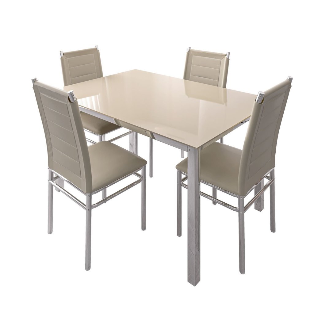 Conjunto Sala de Jantar Mesa Dubai Tampo Vidro com 4 Cadeiras Tokio Cromado/Off White