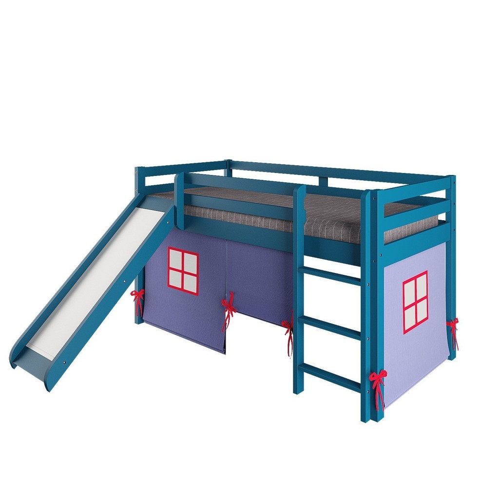 Cama Alta Infantil com Escorregador e Tenda em Madeira Maciça/mdf Azul