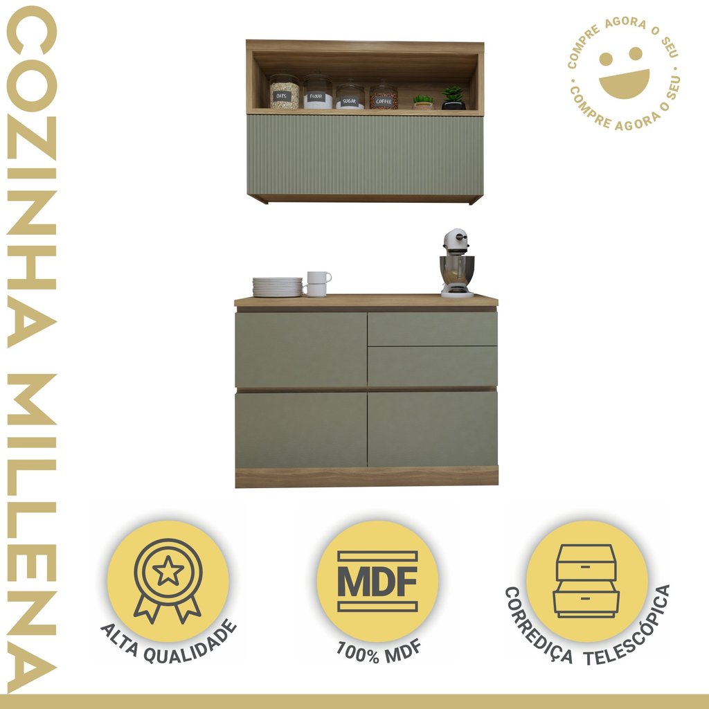 Cozinha Millena 2 Peças 120cm 100% Mdf Yescasa Verde/Nature