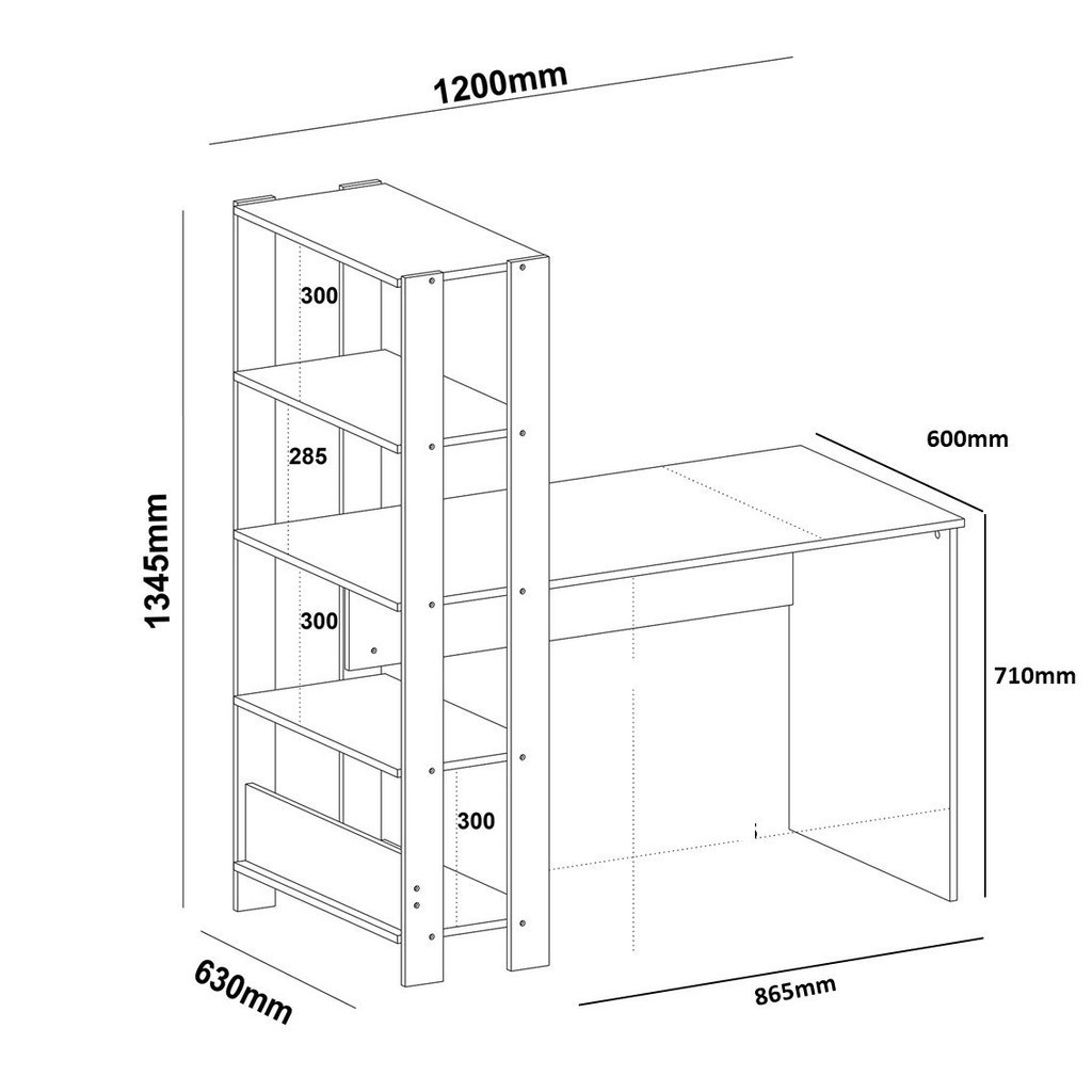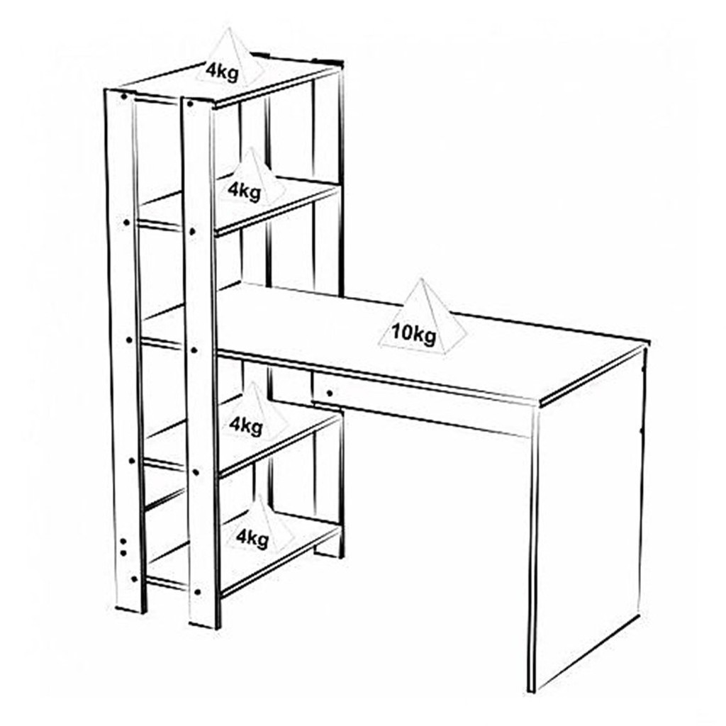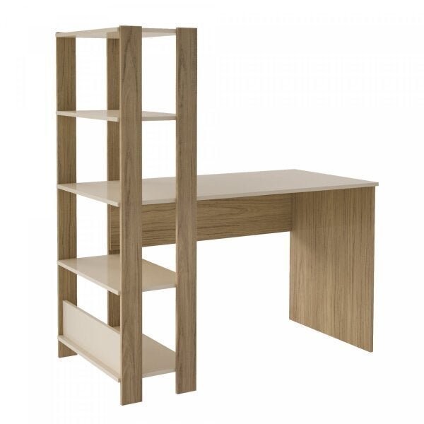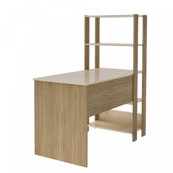 Escrivaninha Mesa Escritório com Estante 4 Prateleiras 120cm Match Off White/Carvalho