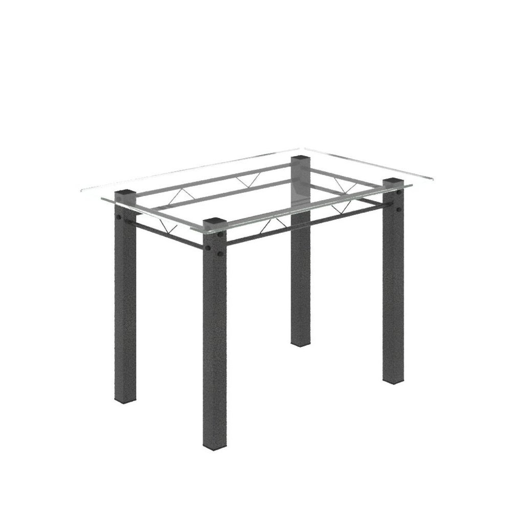 Conjunto de Jantar Mesa 100x60cm Tampo de Vidro Incolor com 4 Cadeiras Sara Yescasa Preto/Prata