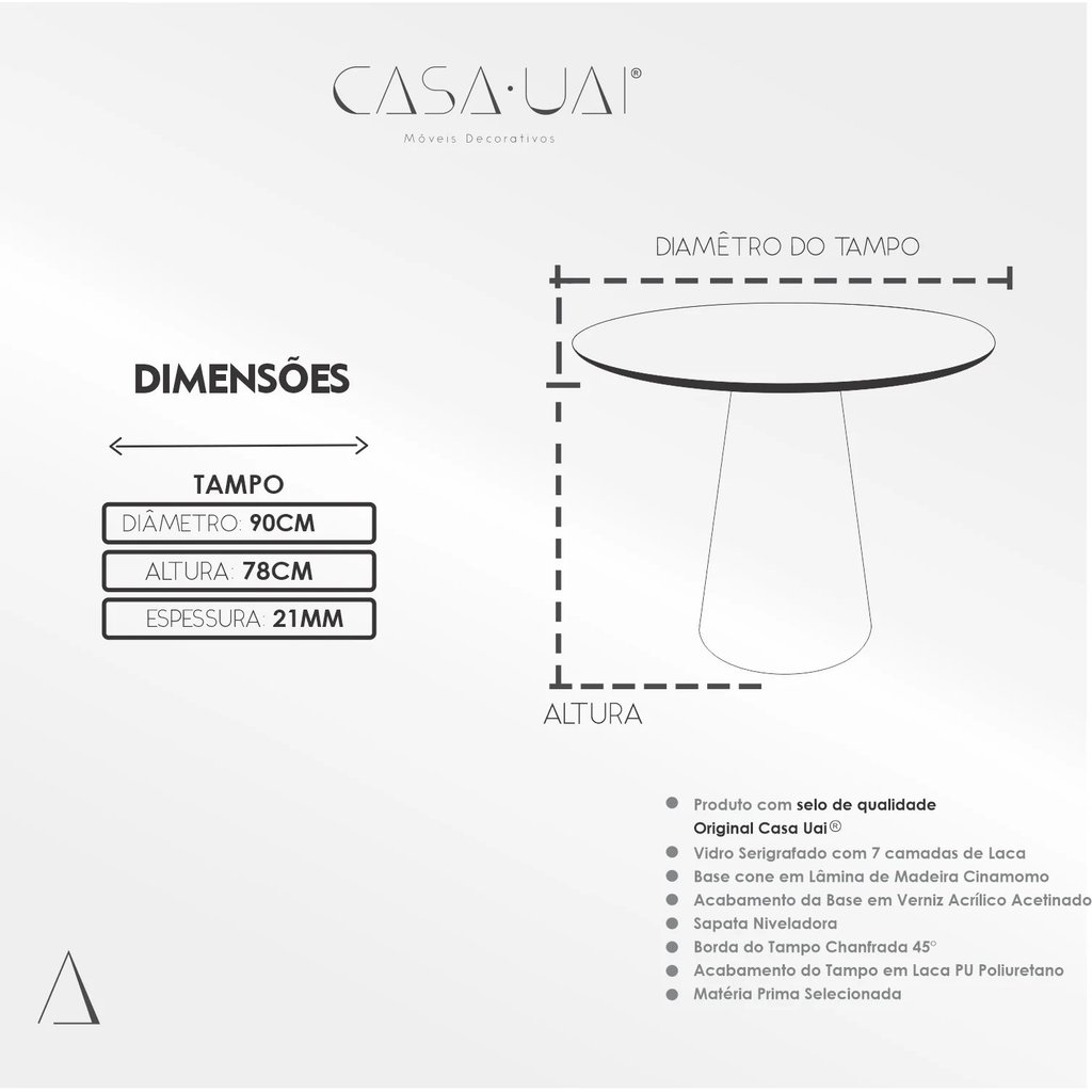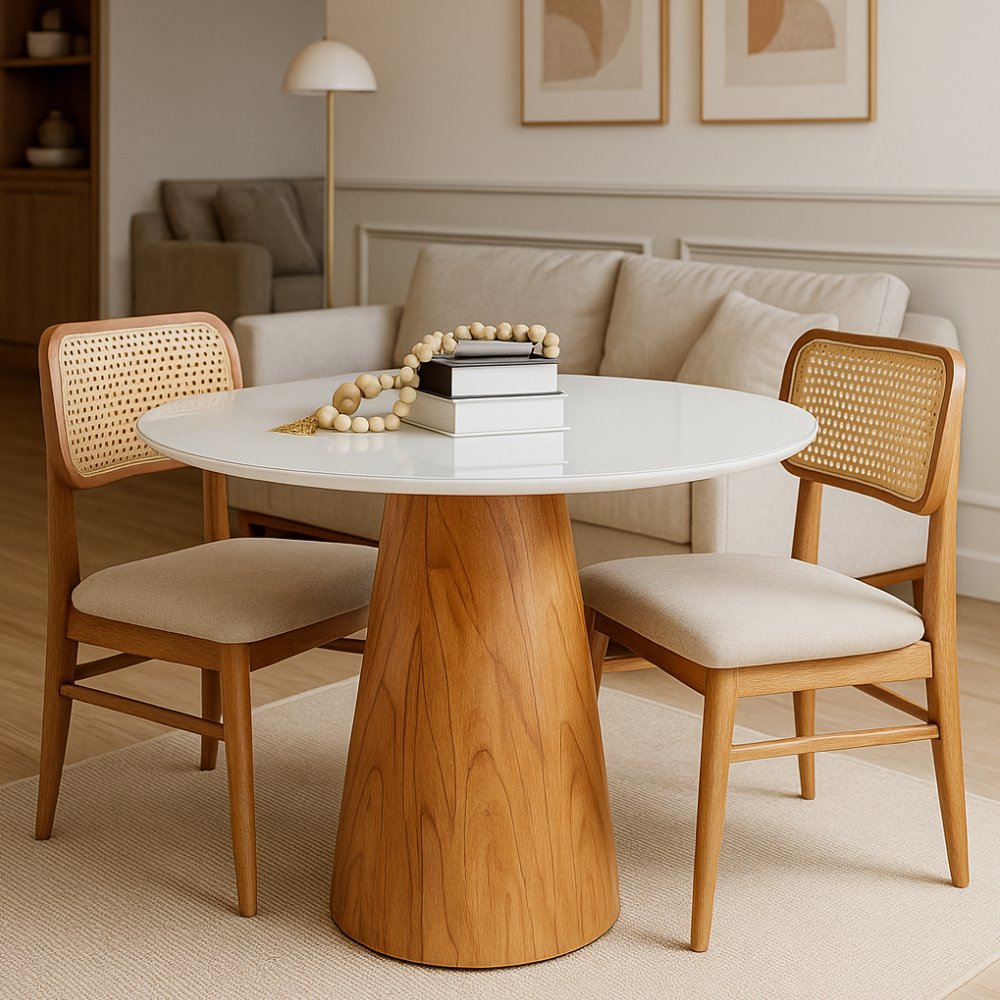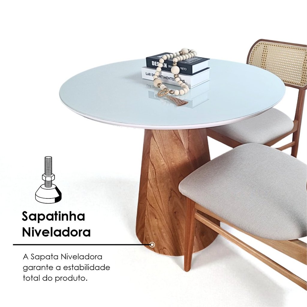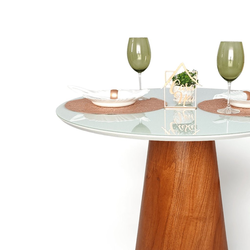 Mesa de Jantar Cone Redonda Vidro Cairo Branco