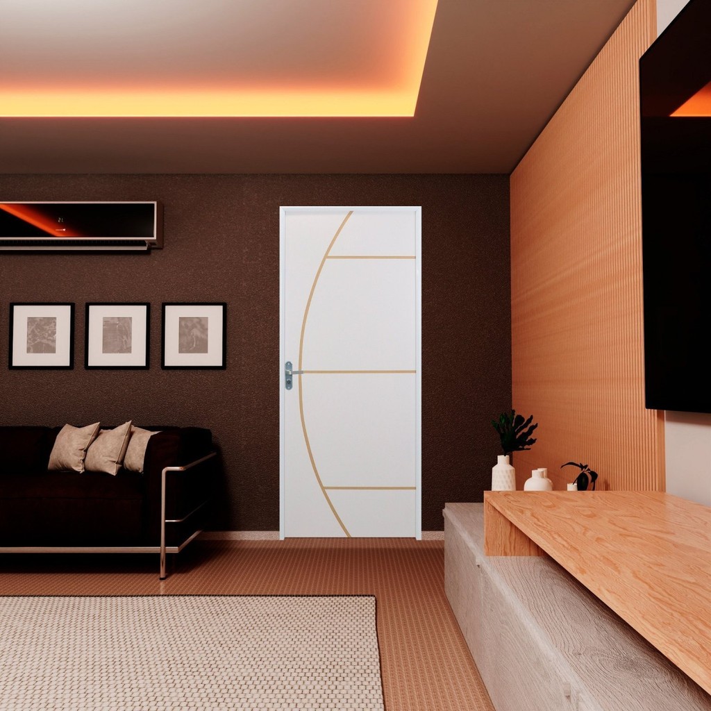 Kit Porta de Madeira Decorada 212x75cm com Batente de Aluminio 3,6cm Gáucha Mgm Abertura Direita Branco